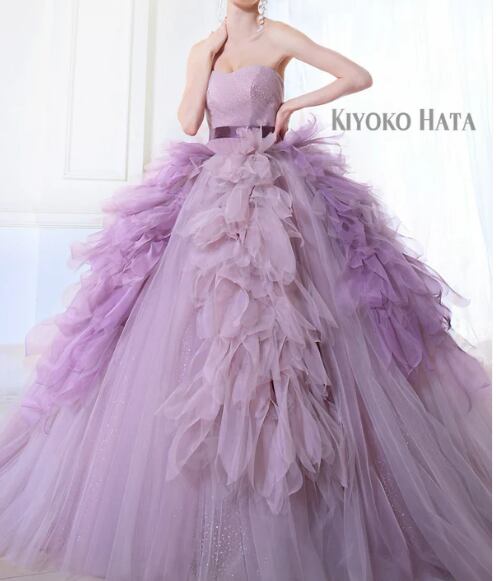 輝きな光彩を放つ ピンク紫 ソフトチュール カラードレス 柔らかく重ねたチュールス 2次会 前撮り 花嫁 挙式