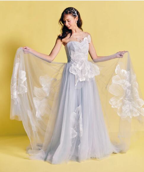 輝きな光彩を放つ 魅惑の花レース リボン ソフトチュール カラードレス 2次会 前撮り 花嫁 挙式