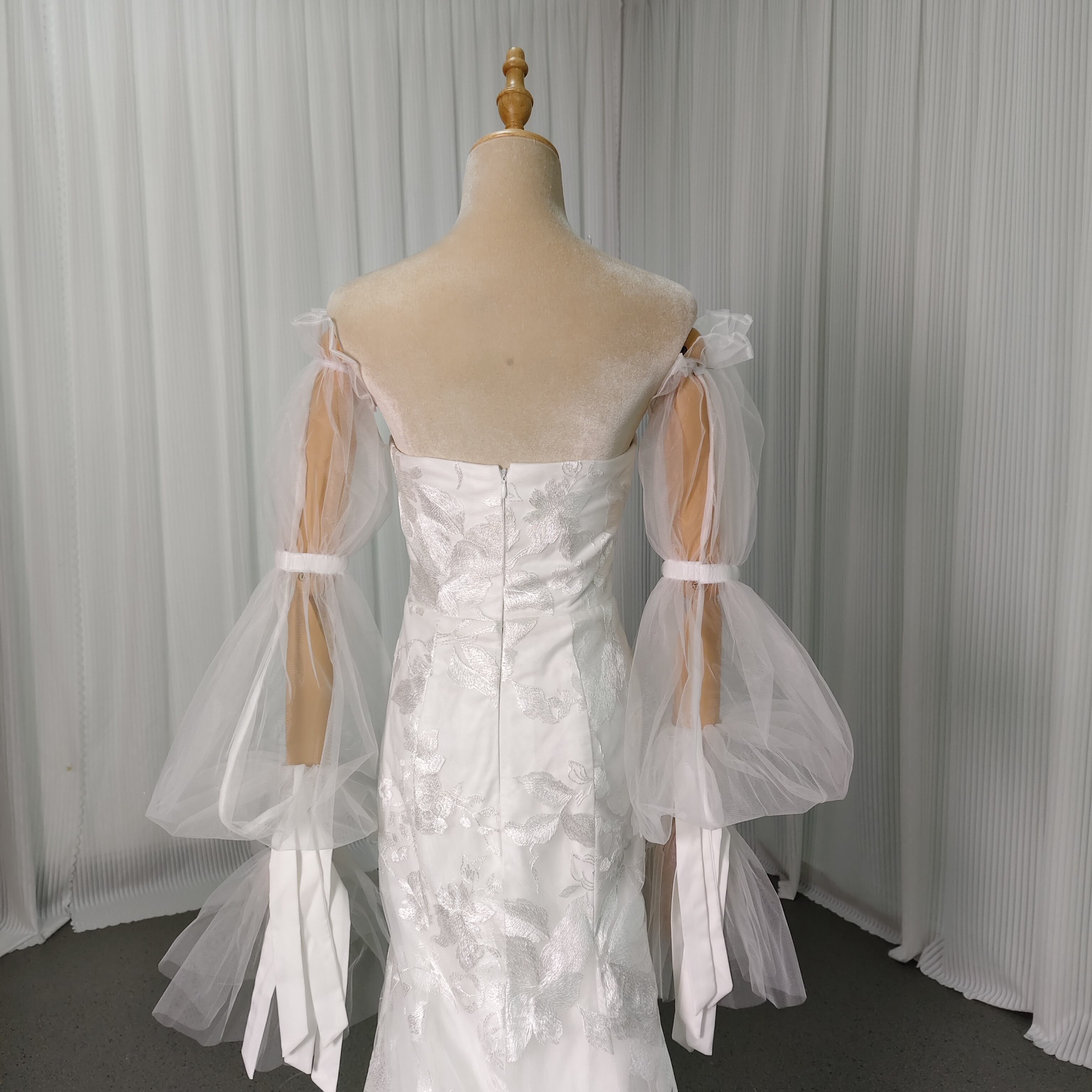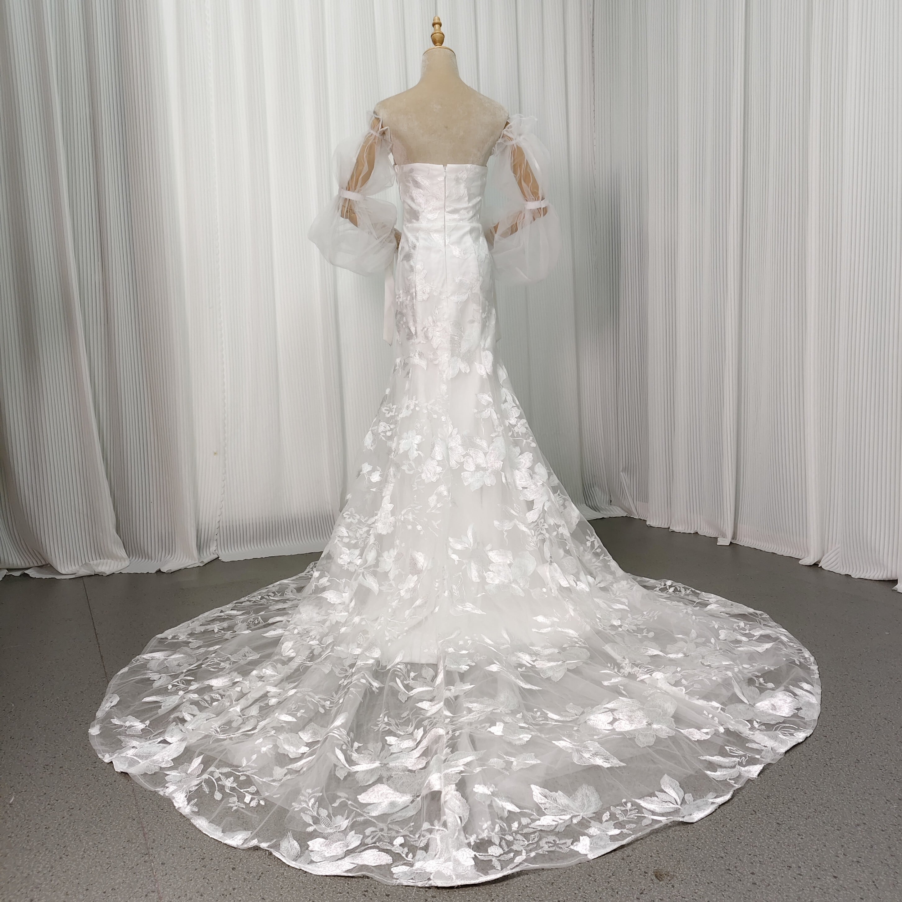 輝きな光彩を放つ 上品レース 取り外し透视袖子ウエディングドレス 華やかなトレーンマーメイドライン /結婚式/披露宴