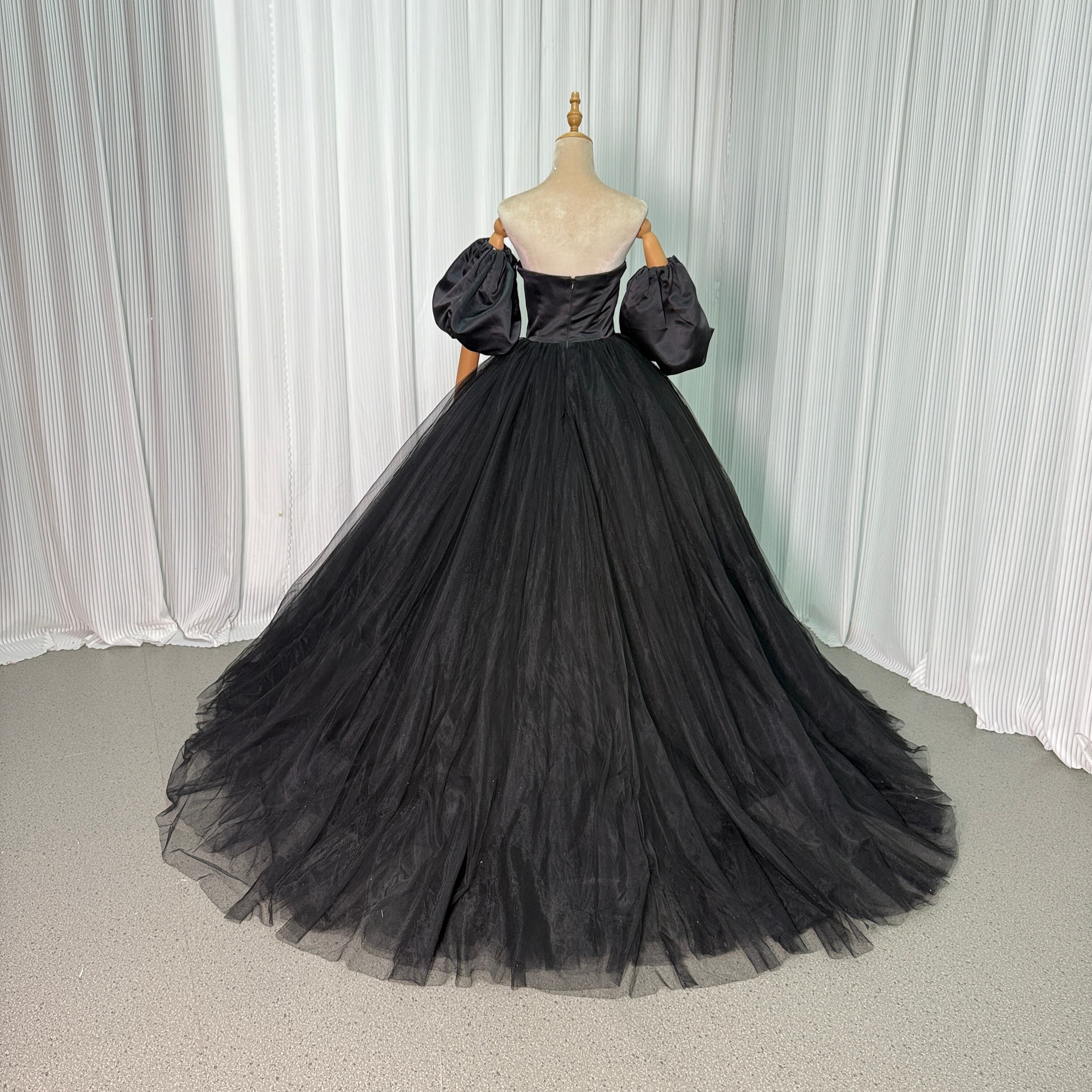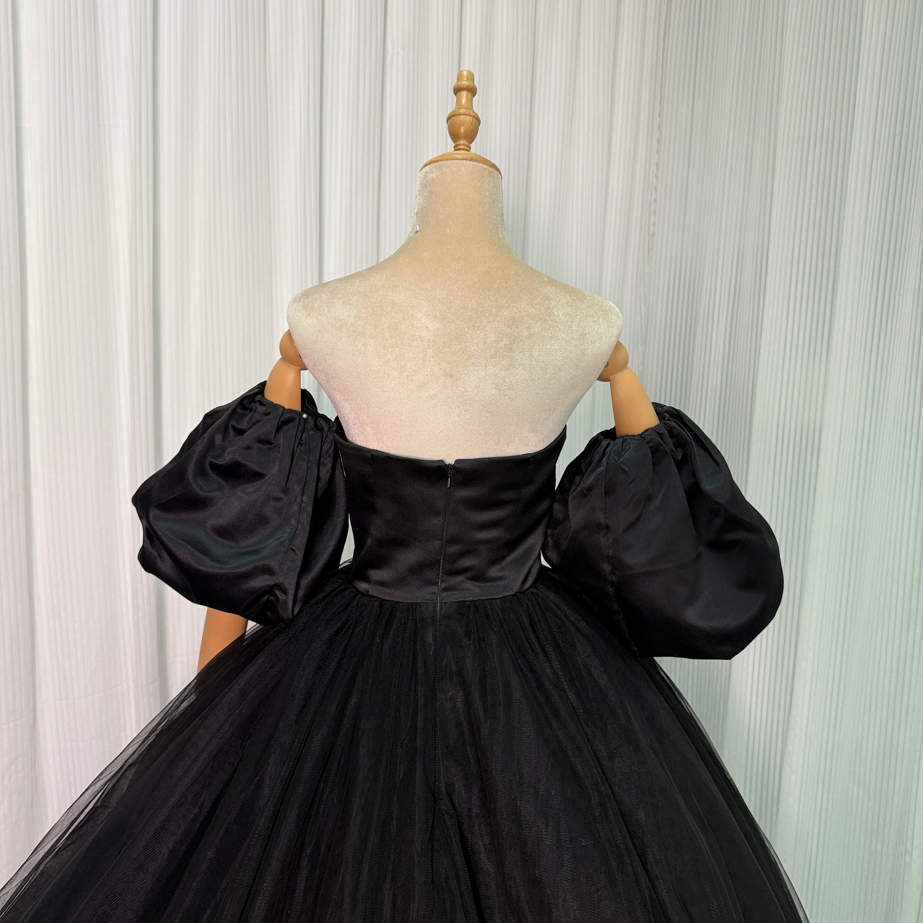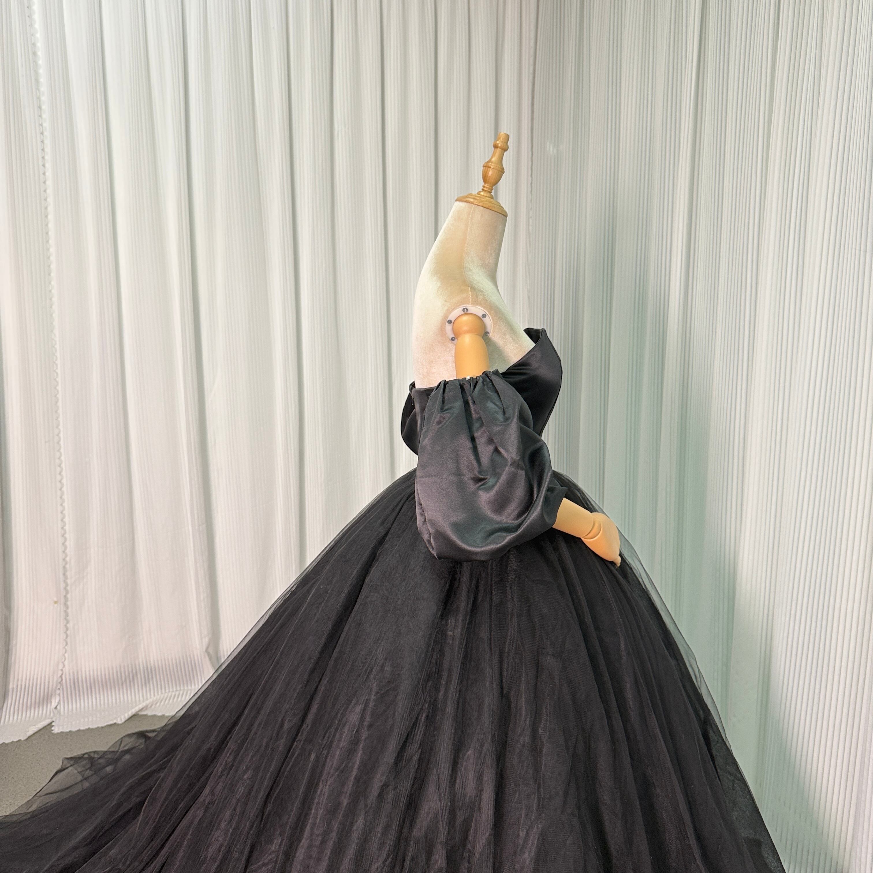 人気上昇!黑 ベアトップ パフスリーブソフトチュール カラードレス プリンセスライン二次会挙式/前撮り