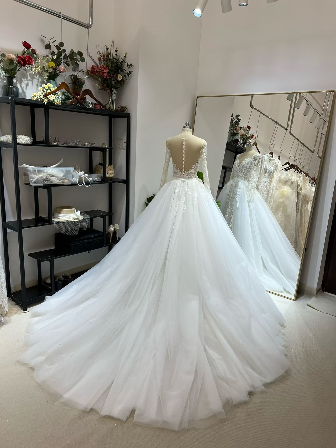 豪華! オフホワイト 3D立体レース刺繍 ウエディングドレス ソフトチュール マーメイドライン 2W 結婚式
