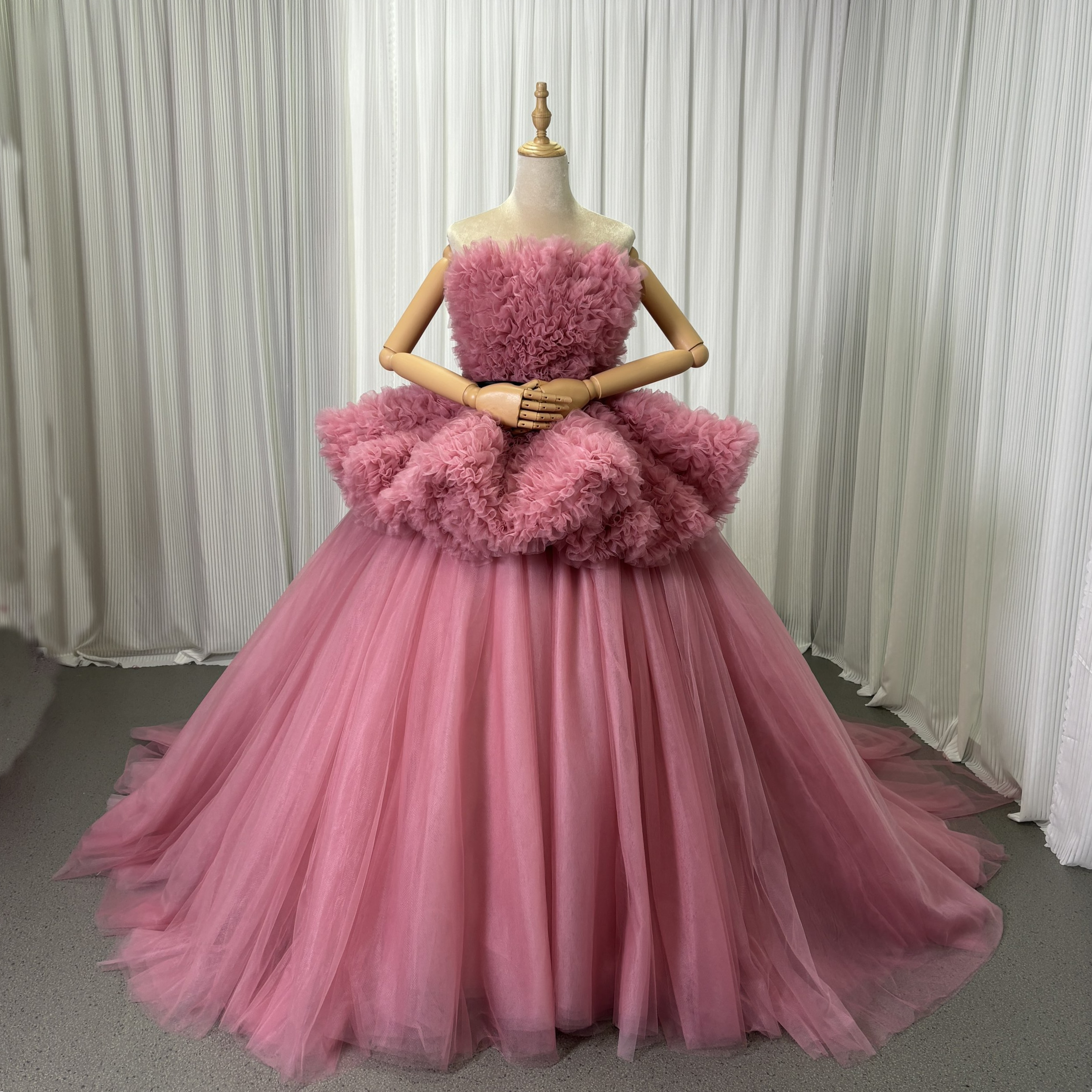 華やか ピンク 取り外し トップス カラードレス チュールドレス プリンセスライン前撮り/花嫁/結婚式/披露宴