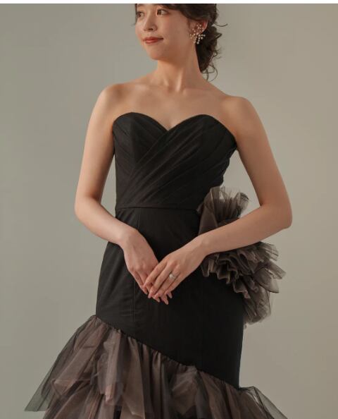 黒 ベアトップ カラードレス ふっくら柔らかなバックリボン 結婚式