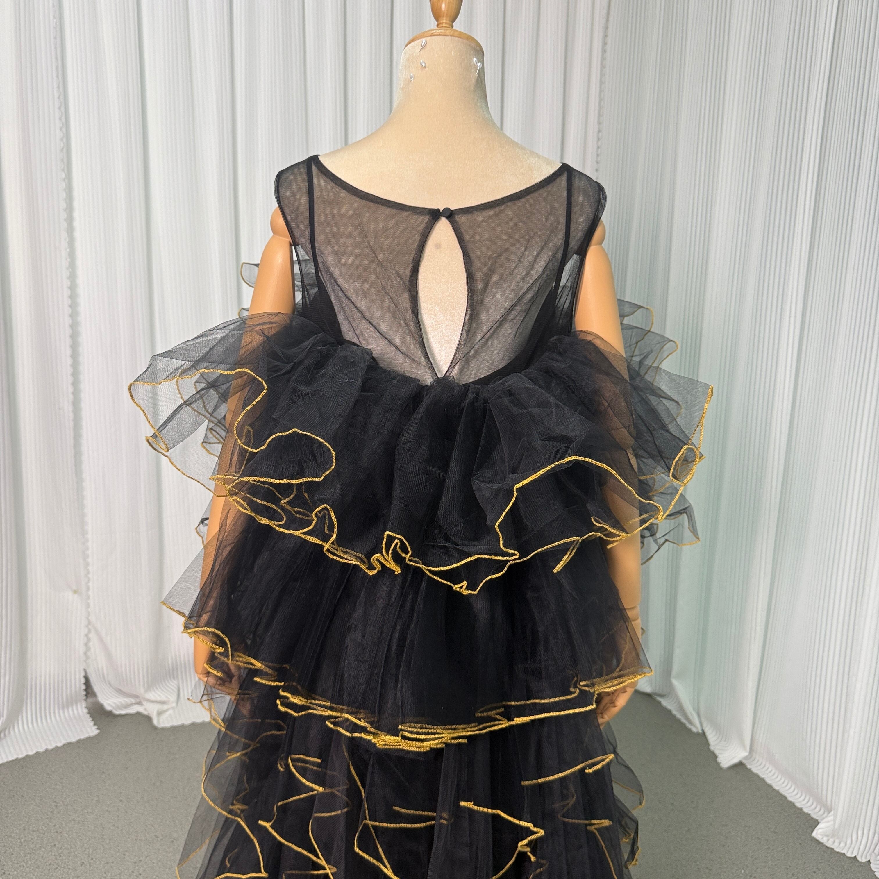 雅やか 黒 アシメドレス カラードレス フレアスカート 柔らかく重ねたチュールスカート 2次会 前撮り 花嫁 挙式