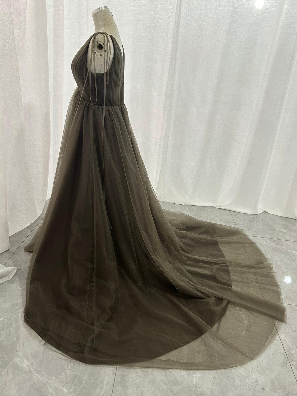 送料無料!ブラウンカラードレス 前撮り 結婚式ドレス 2次会 Aライン パーティードレス