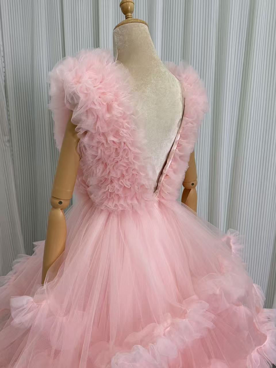 Vネックドレス カラードレス ピンクソフィア ふわふわドレス 抜群のおしゃれ見え 前撮り 花嫁