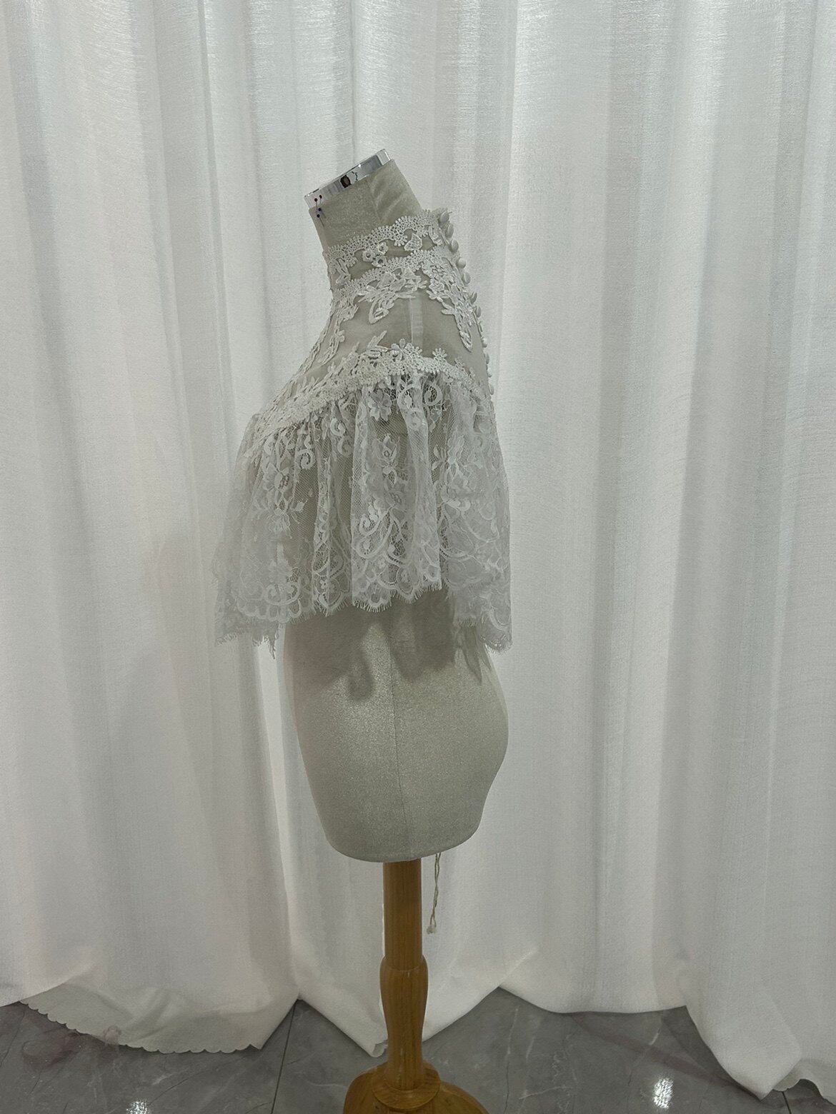 上品!ウエディングドレス ボレロ 3D立体レース刺繍 ポンチョ 結婚式/披露宴