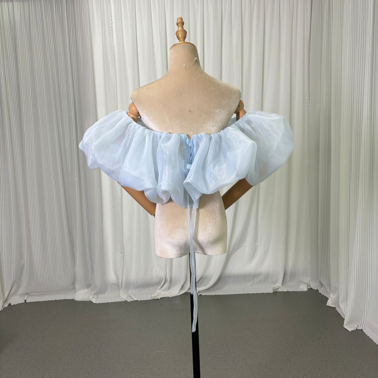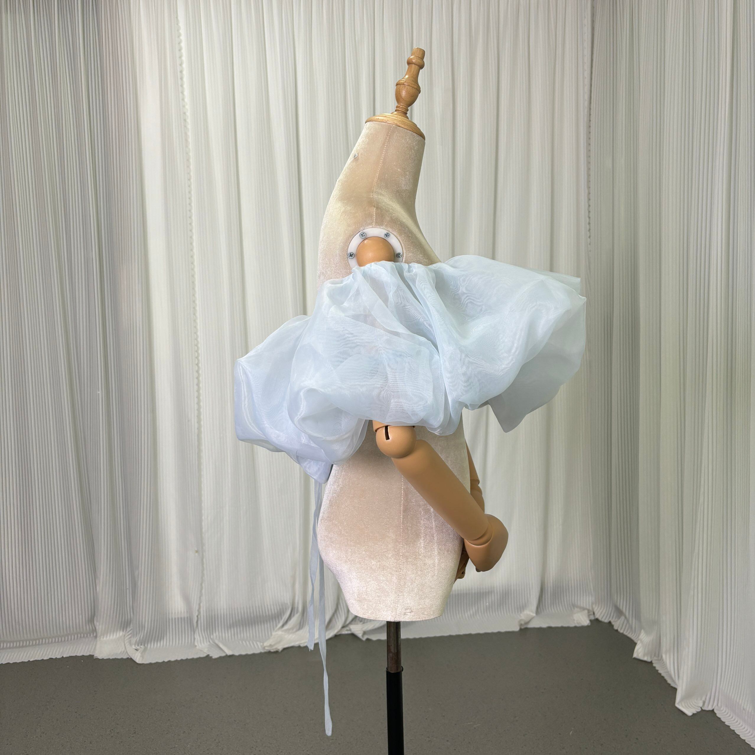 ウエディングドレス 青 上質オーガンジー オフショルダー 色直し サイズ調整可能