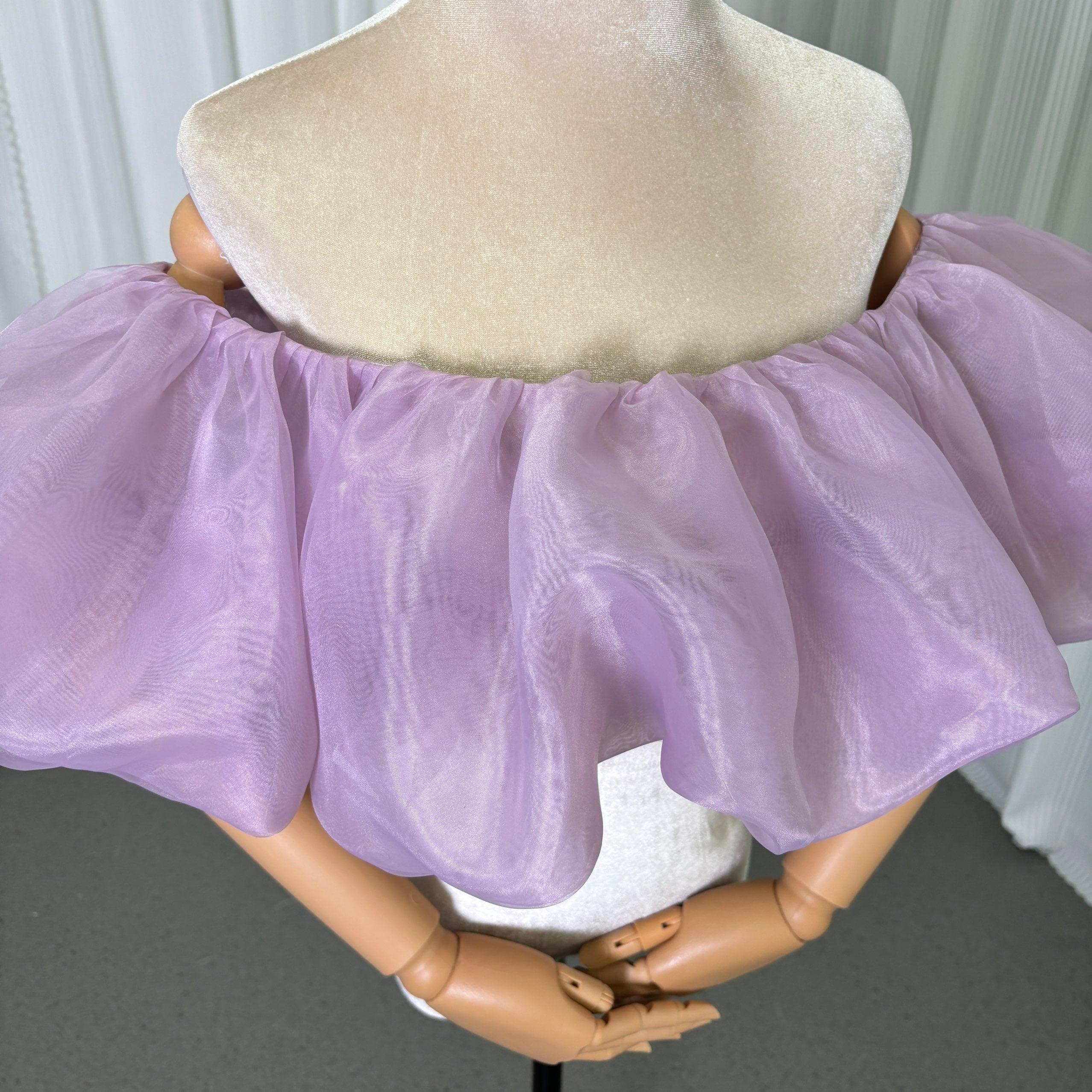 ウエディングドレス 紫 上質オーガンジー オフショルダー 色直し サイズ調整可能