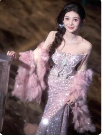 パーティードレスソフトチュールソフトキラキラチュール マーメイドライン + ソフトチュールポンチョ 挙式/前撮り/花嫁/結婚式/披露宴/