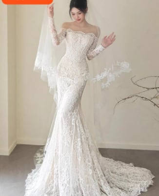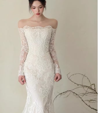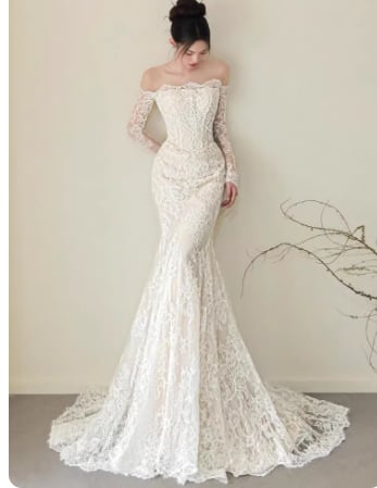 贅沢な総レース オフショルダーウエディングドレス パーティードレスソフト マーメイドライン 挙式/前撮り/花嫁/結婚式/披露宴/