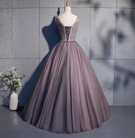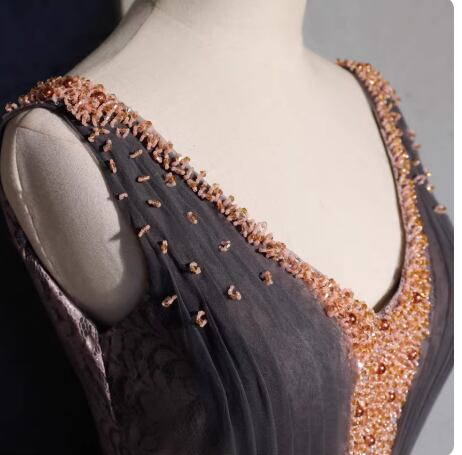 コーヒーの色 Vネック カラードレス キラキラチュール フレアスカート プリンセスライン /挙式/前撮り/結婚式