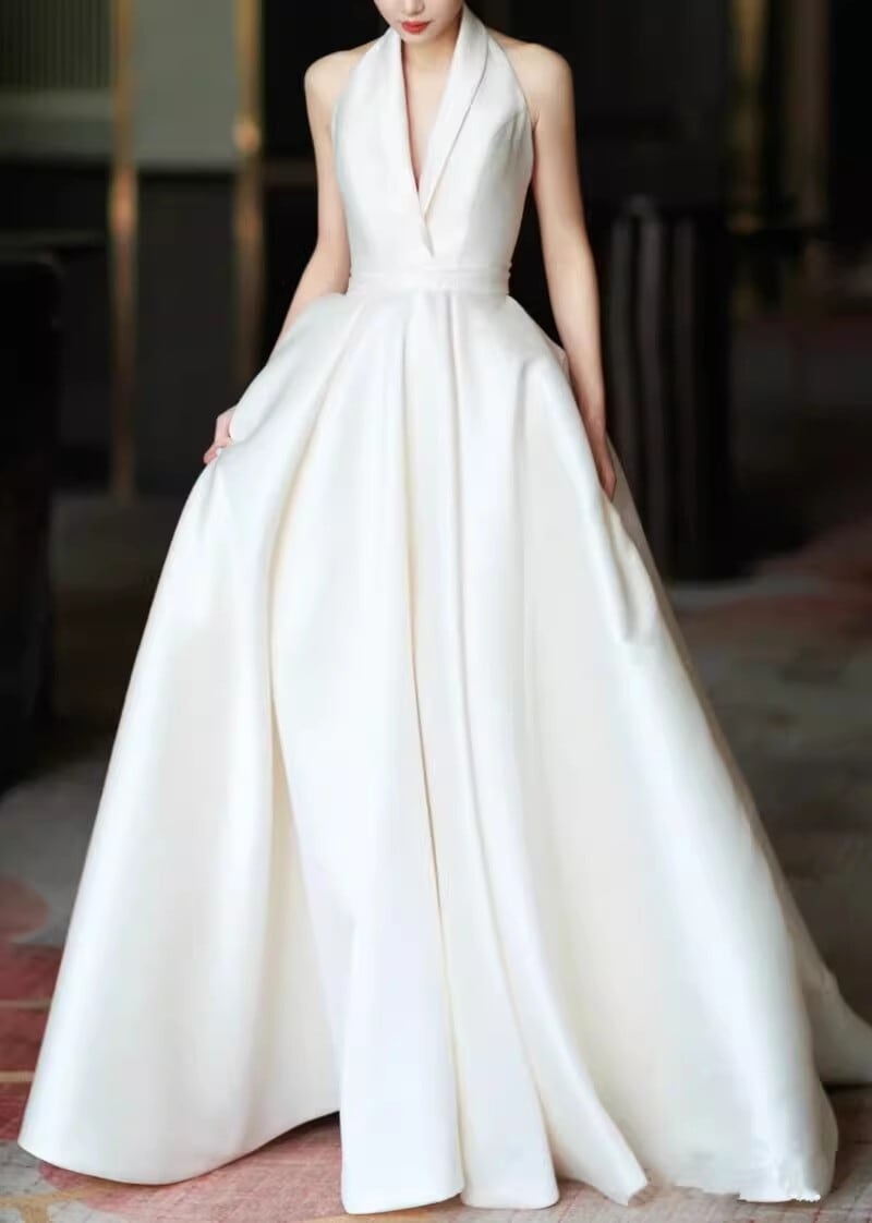 豪華!オフホワイト Vネック ウエディングドレス ロングワンピース 結婚式
