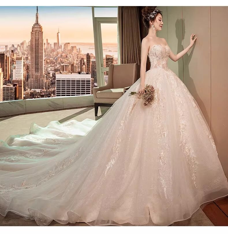 豪華!オフホワイト ウエディングドレ ス上品花レース キラキラチュール プリンセスラインボリュームドレス 結婚式