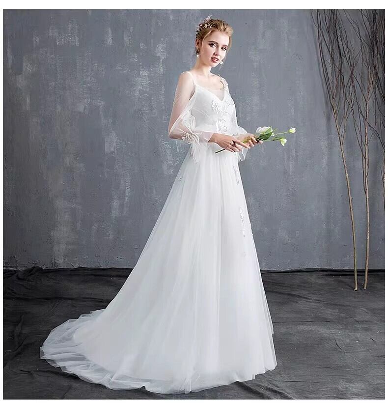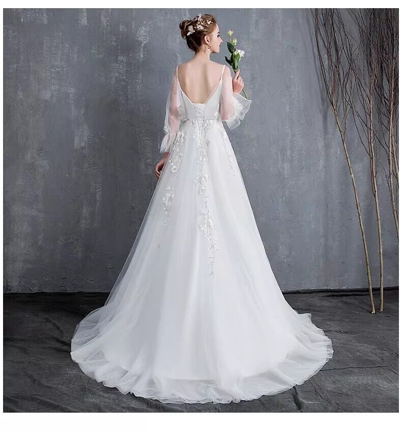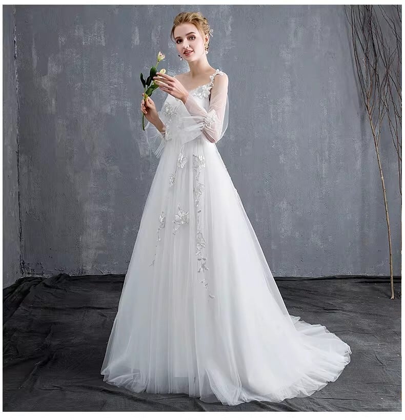 上品!オフホワイト ウエディングドレス 上品花レース パーティードレス 婚式