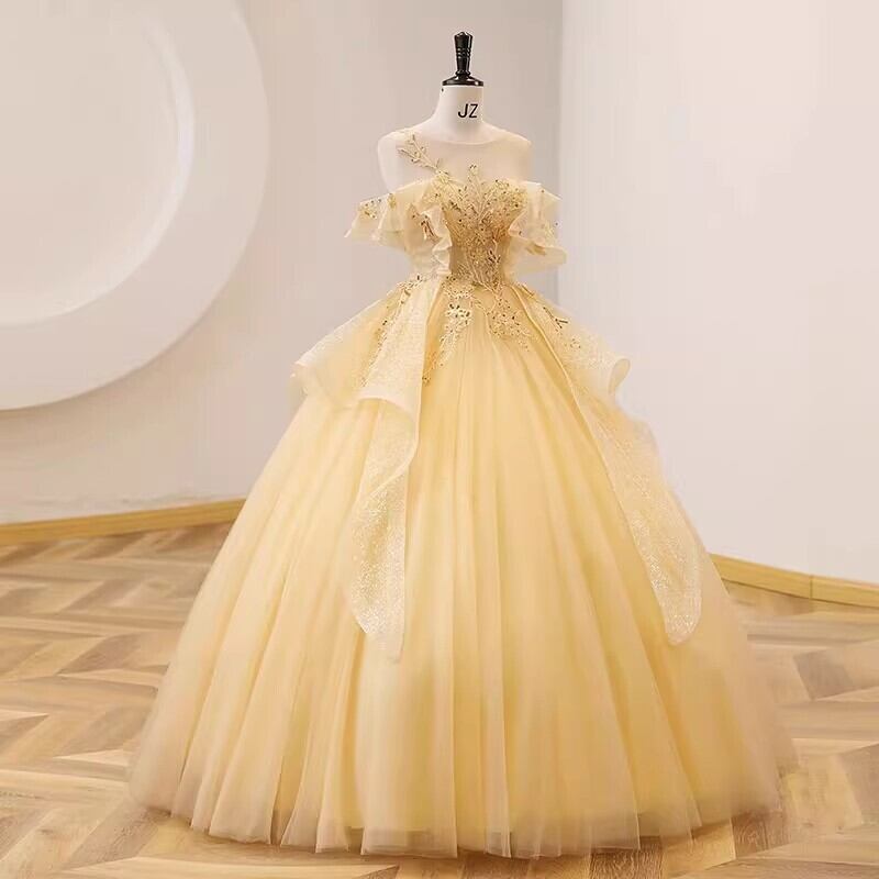 イエロー カラードレス 柔らかく重ねたチュール ソフトチュール プリンセスライン 結婚式