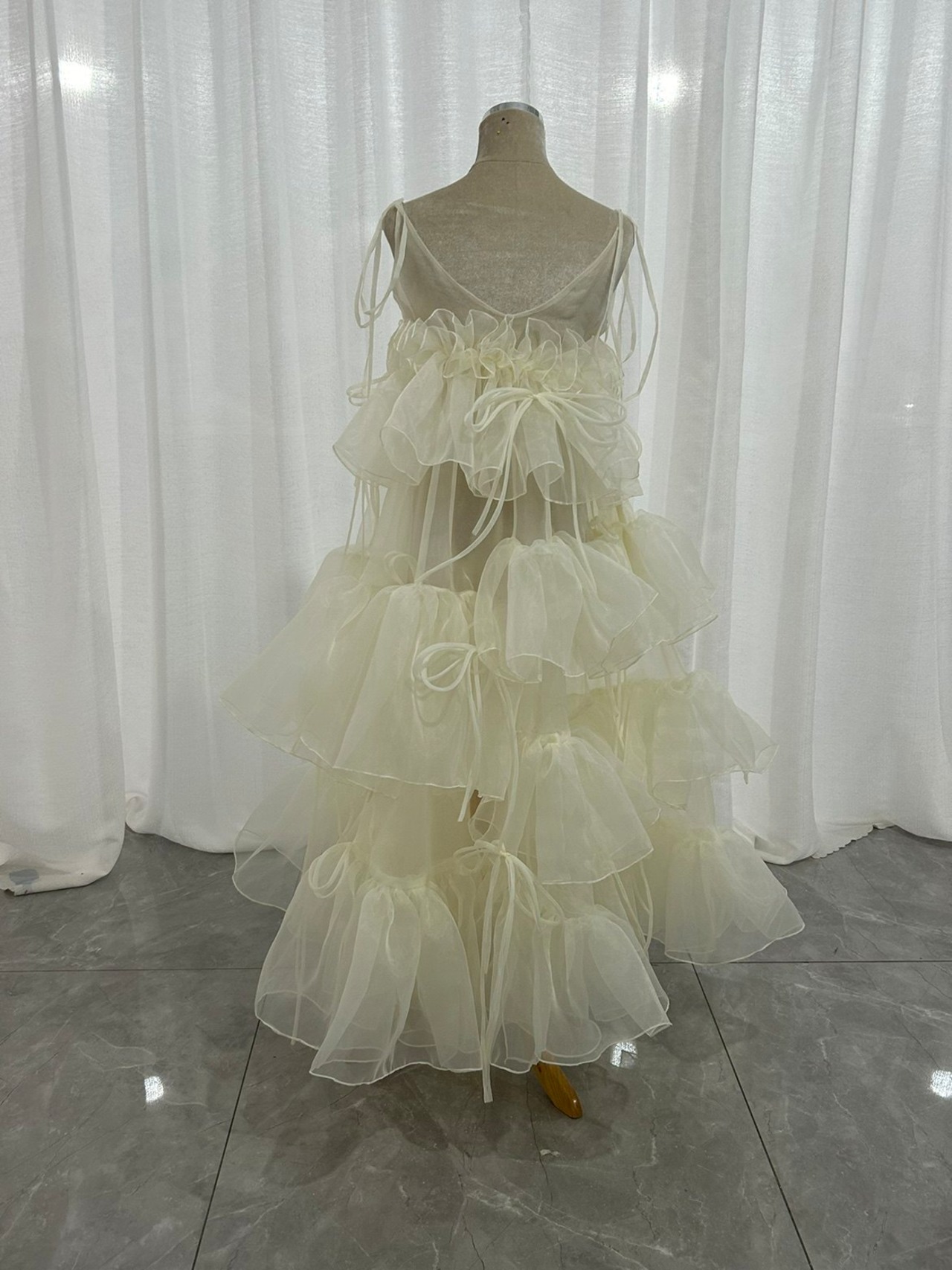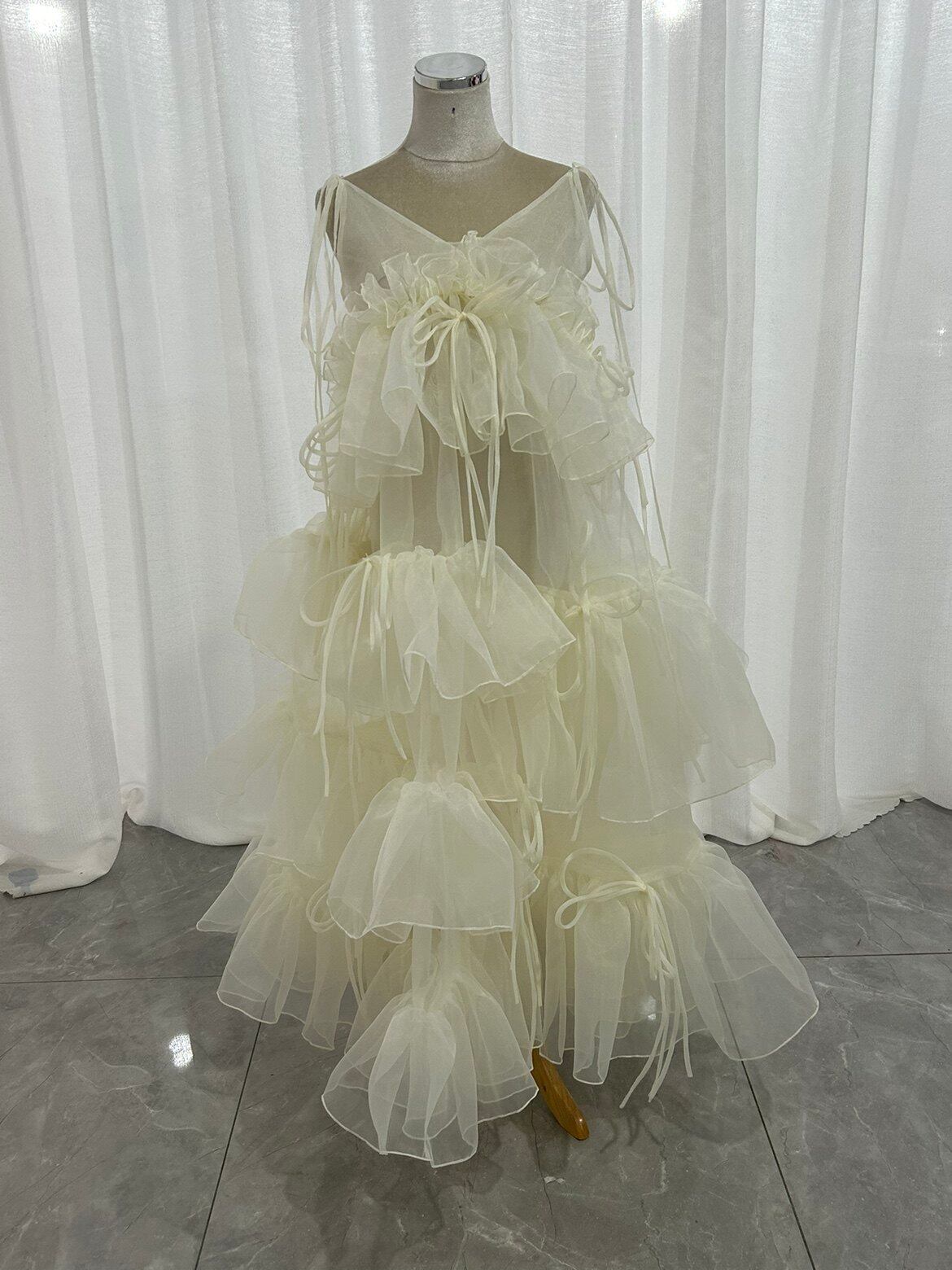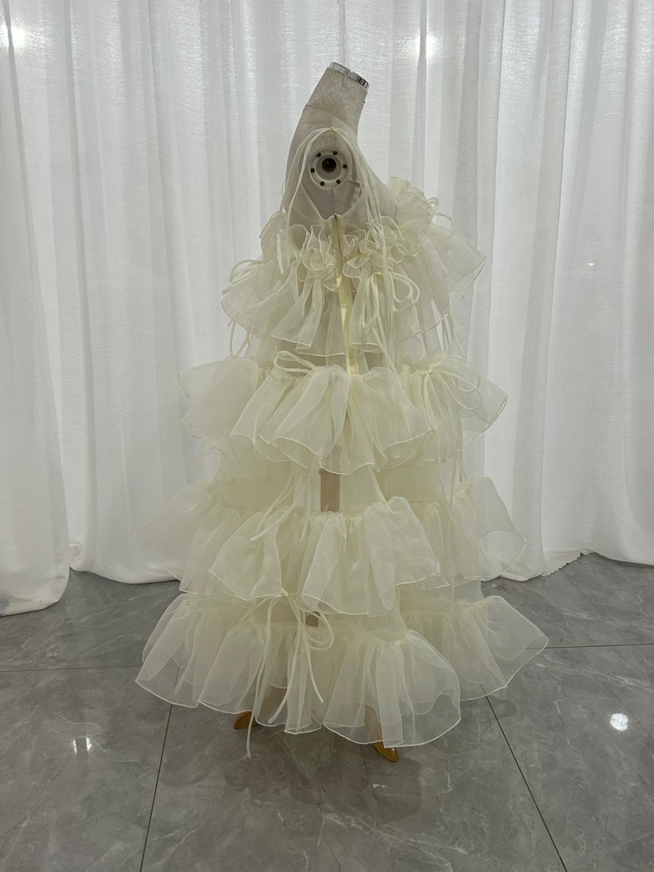 イエロー 上質オーガンジー カラードレス パフスリーブ カラードレス オーバードレス/前撮り/花嫁