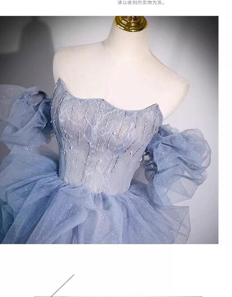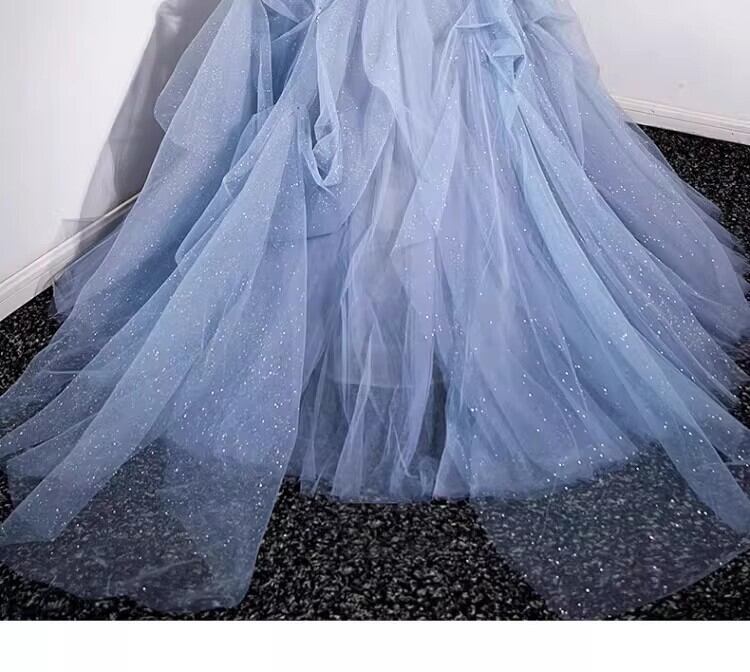 青カラードレス韓国風ドレ もこもこフリルドレス柔らかく重ねたチュール 結婚式