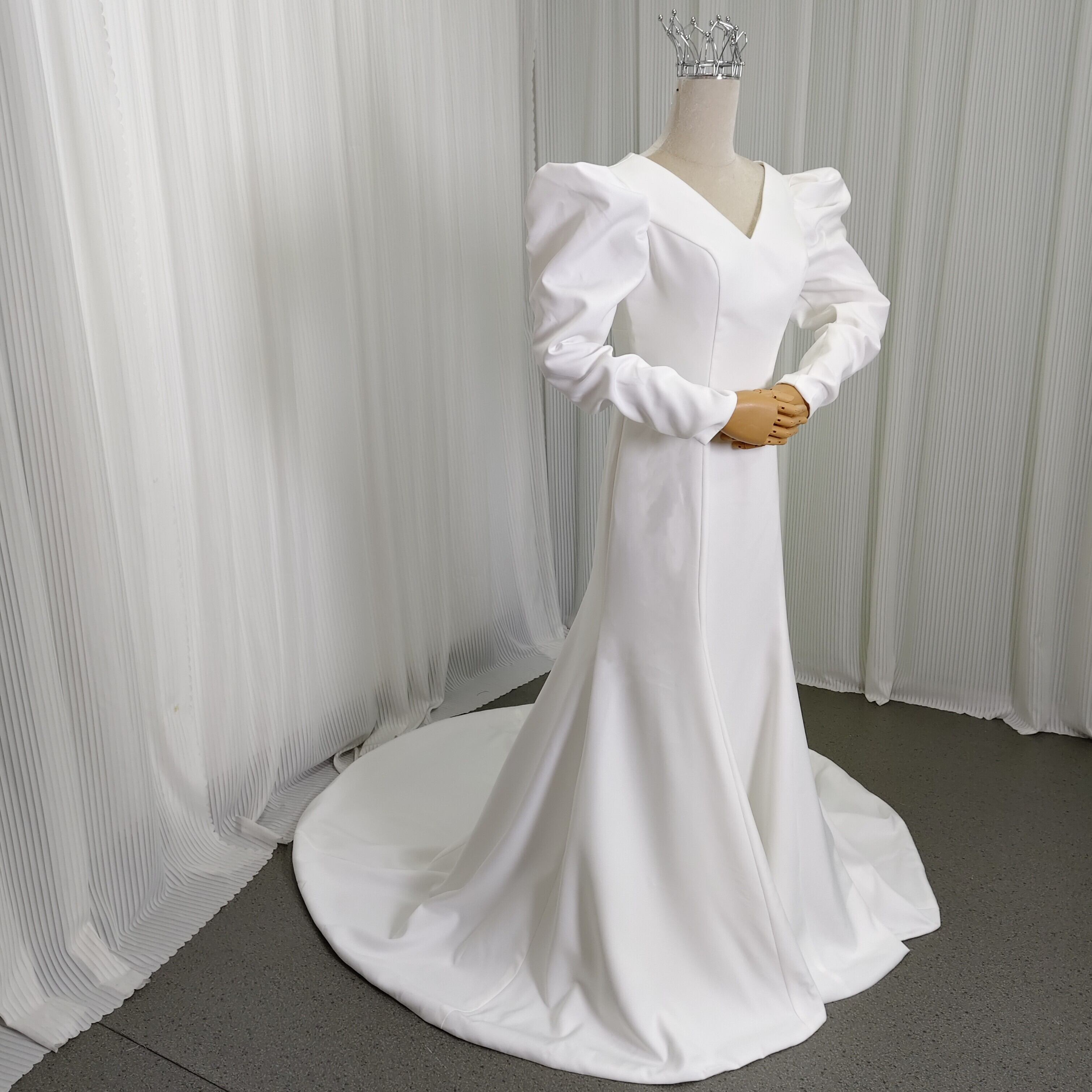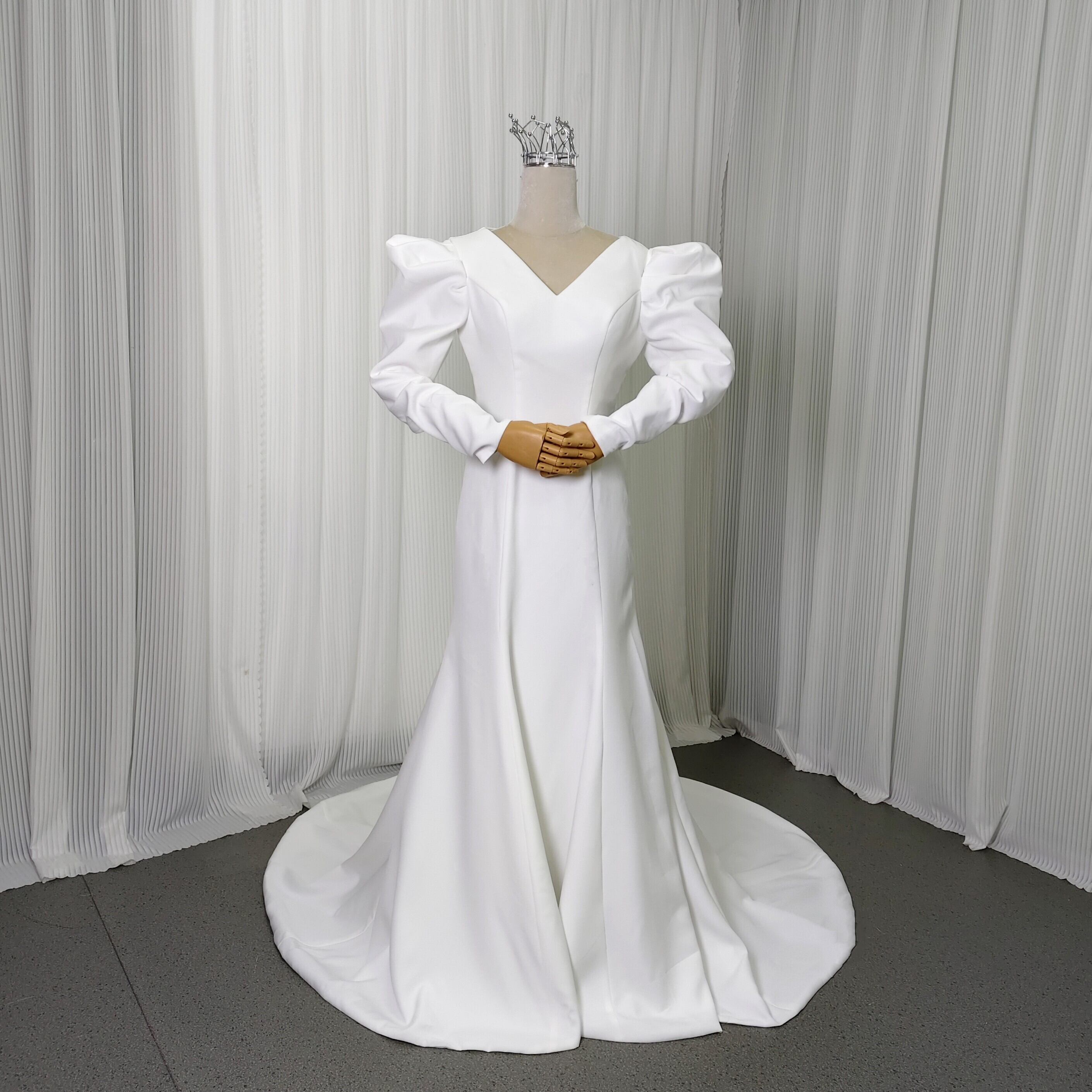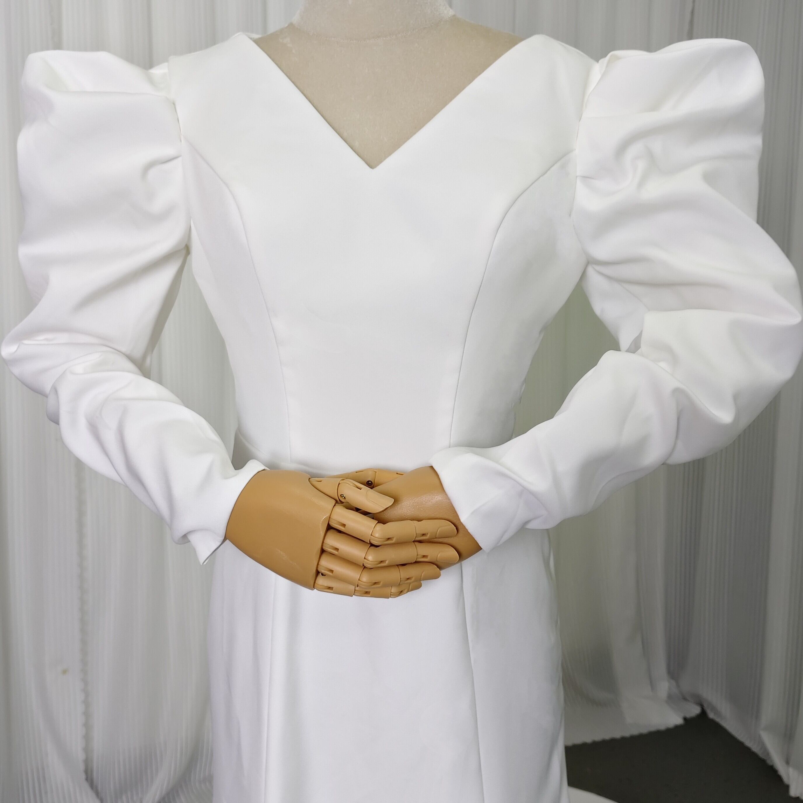 上品 エレガント オフホワイト Vネックドレス 長袖 ウェディングドレスソフトマーメイドライ 前撮り 大人気上昇