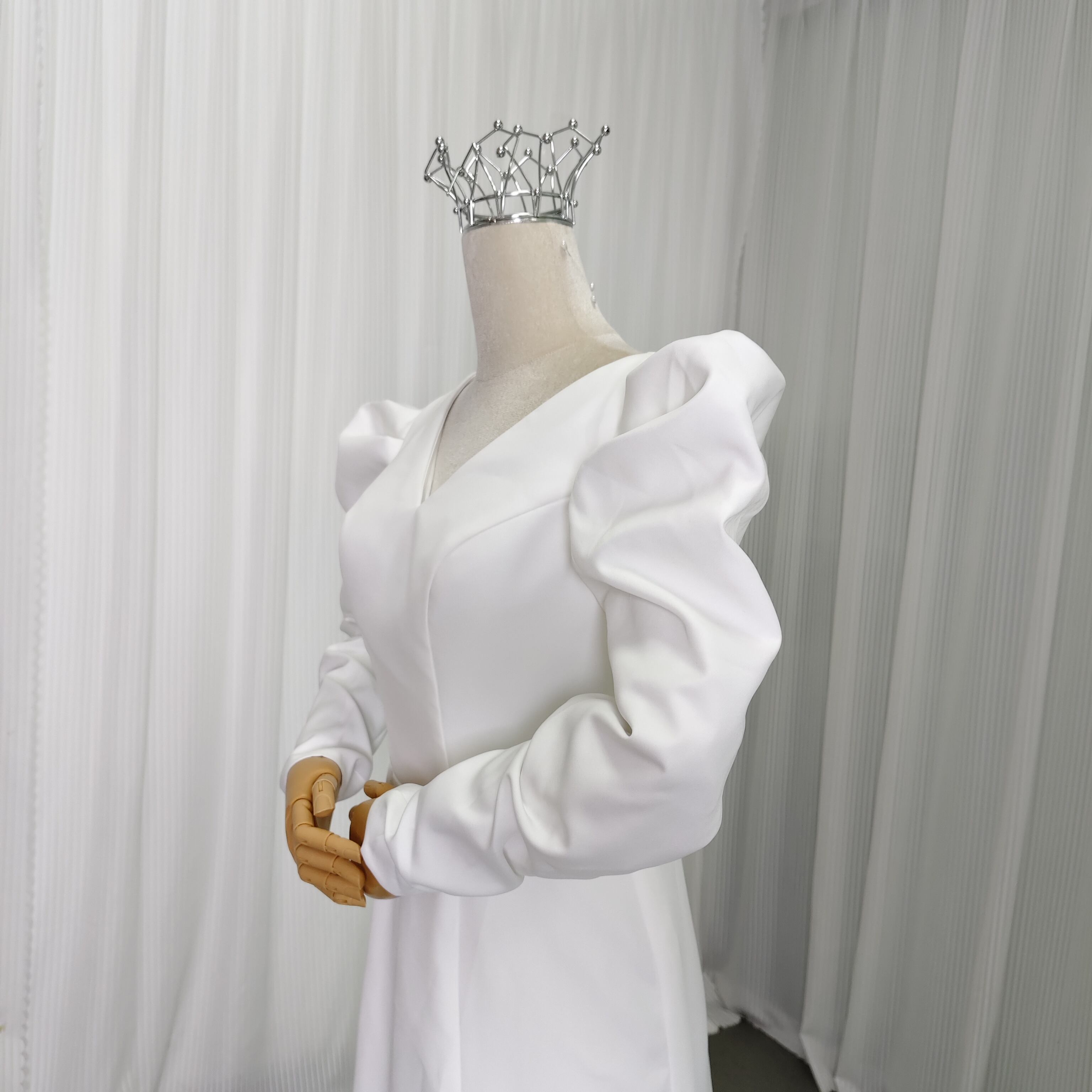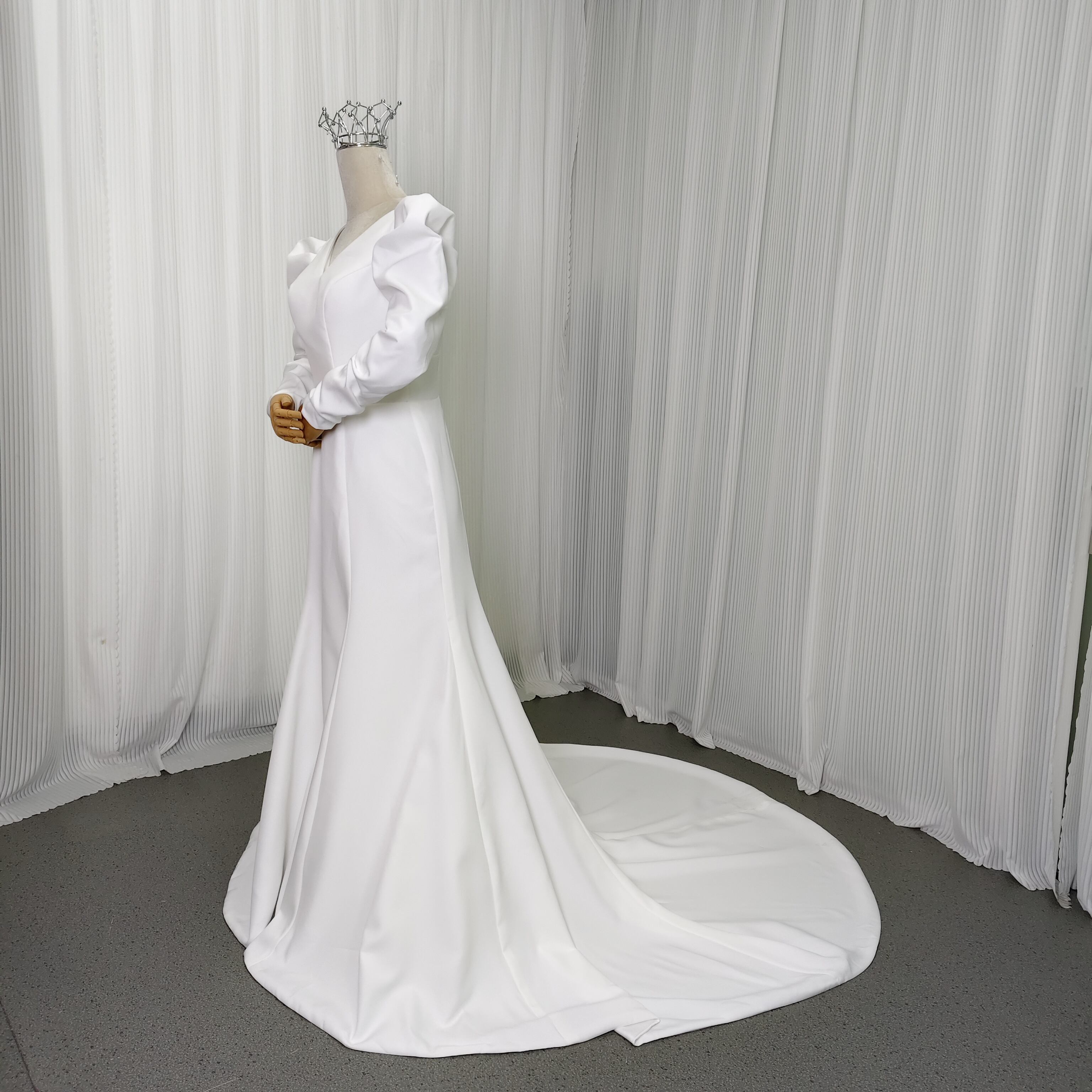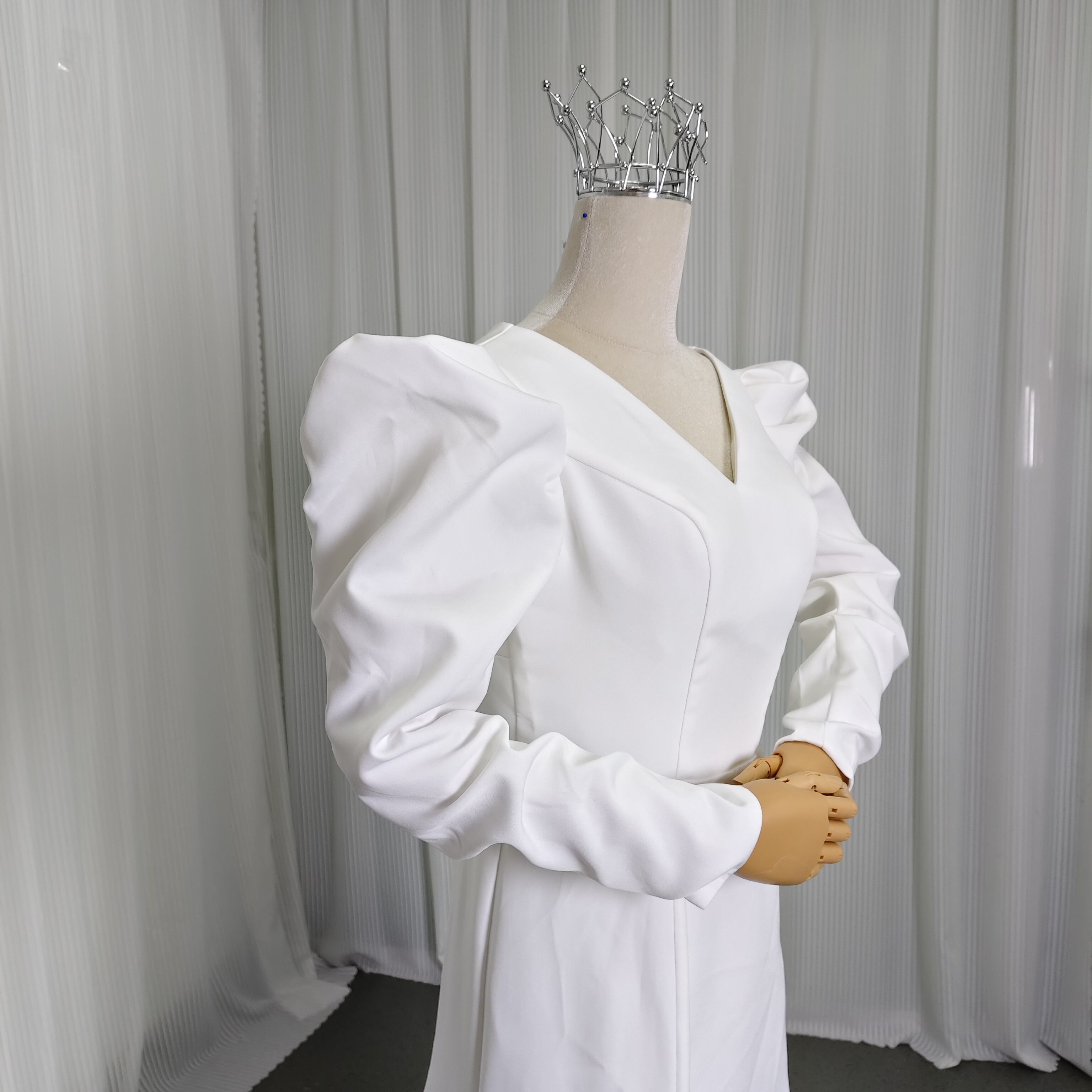 上品 エレガント オフホワイト Vネックドレス 長袖 ウェディングドレスソフトマーメイドライ 前撮り 大人気上昇
