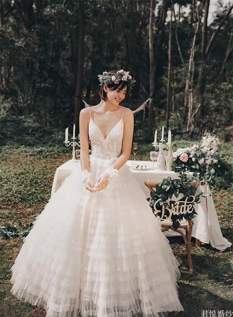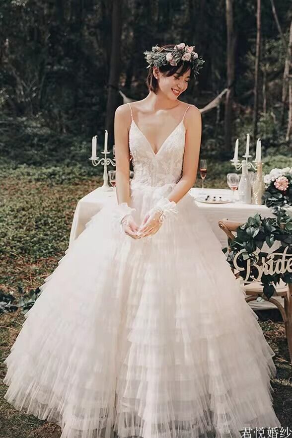 オフホワイトVネック ボリュームドレス カラードレス もこもこフリルドレス ティアードのドレス結婚式