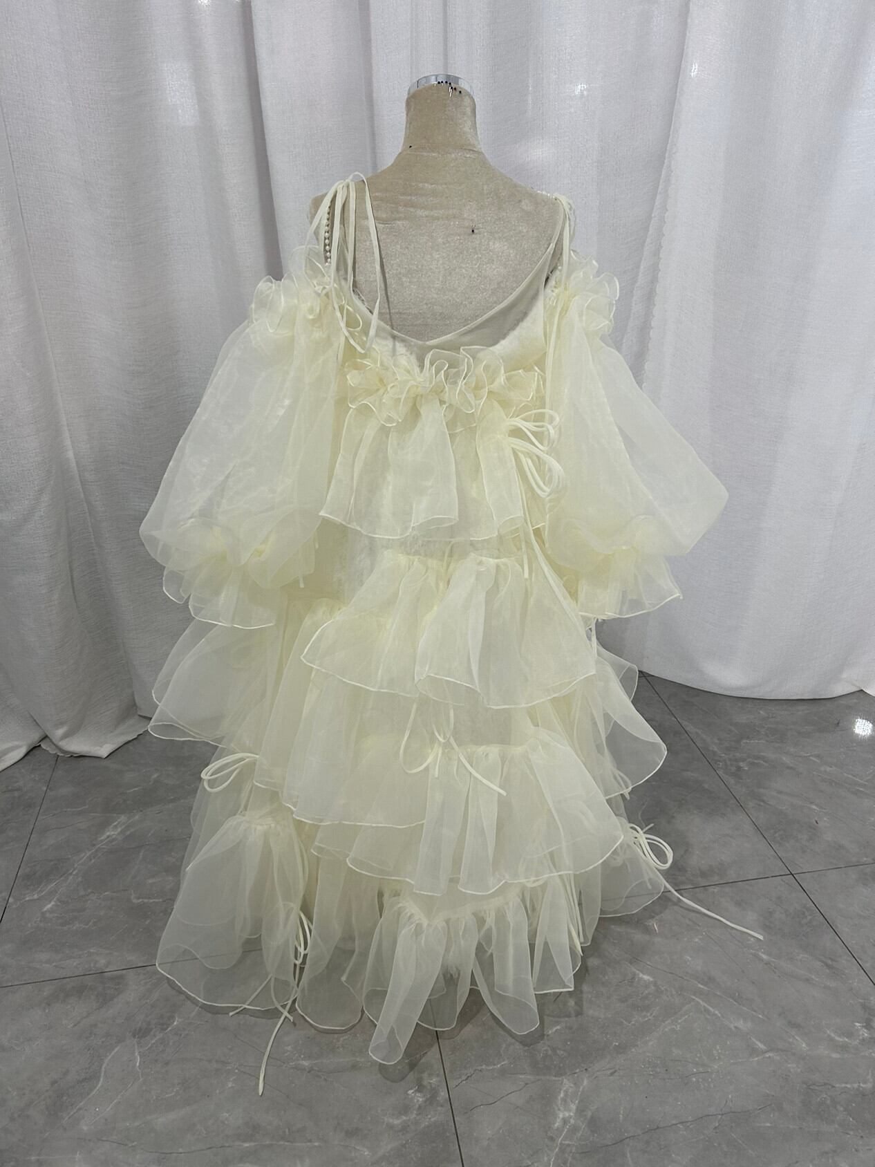 上質オーガンジー カラードレス パフスリーブ オーバースカート+オフホワイトキャミソール ワンピース