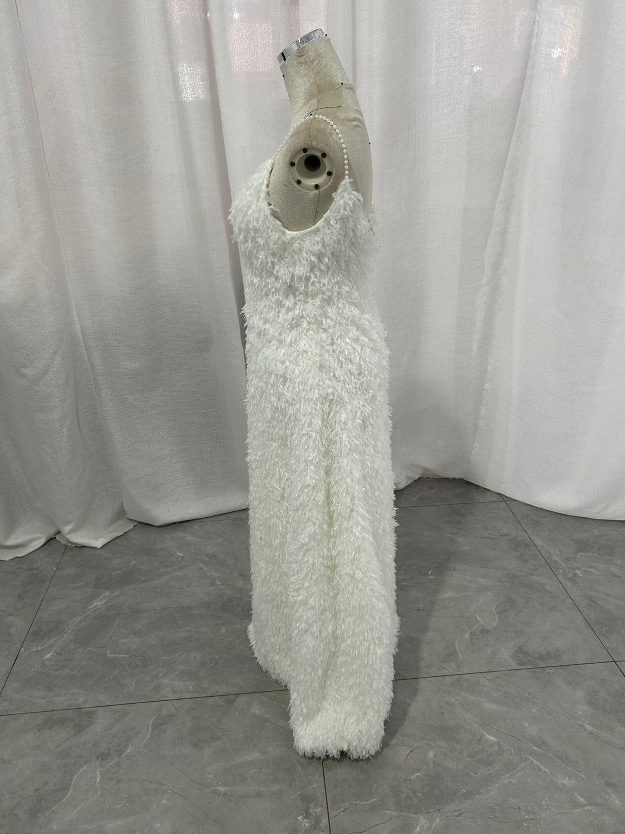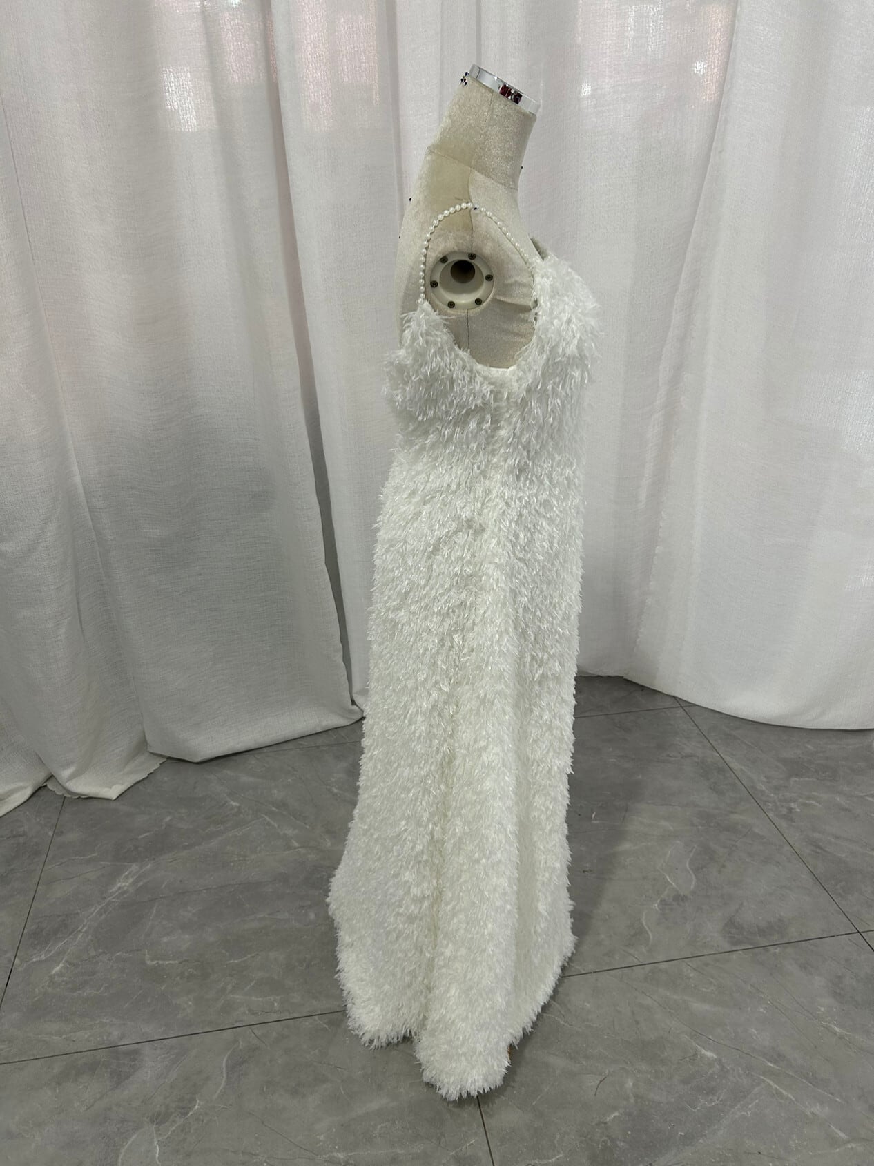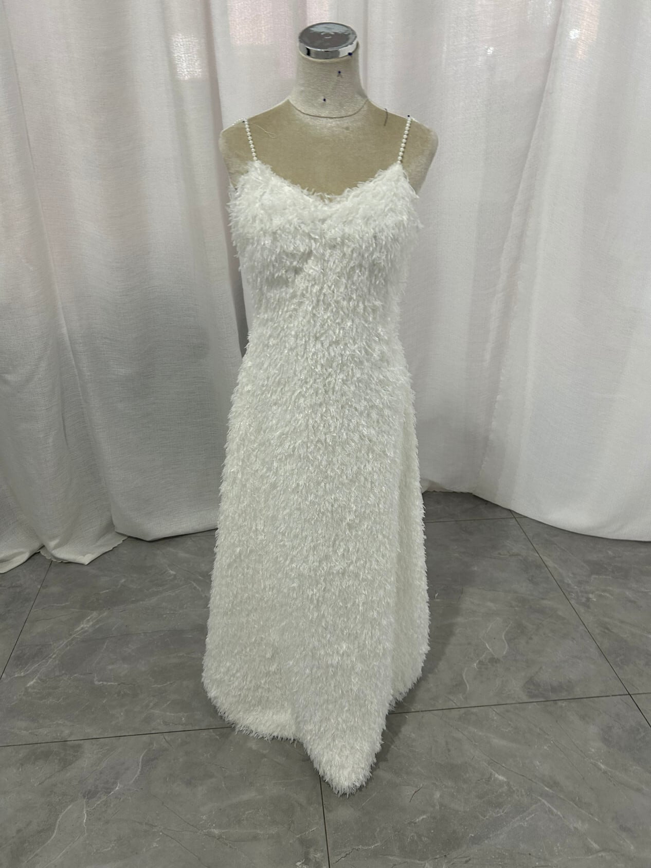 可愛い オフホワイト パール キャミソール ワンピース もこもこフリルドレス