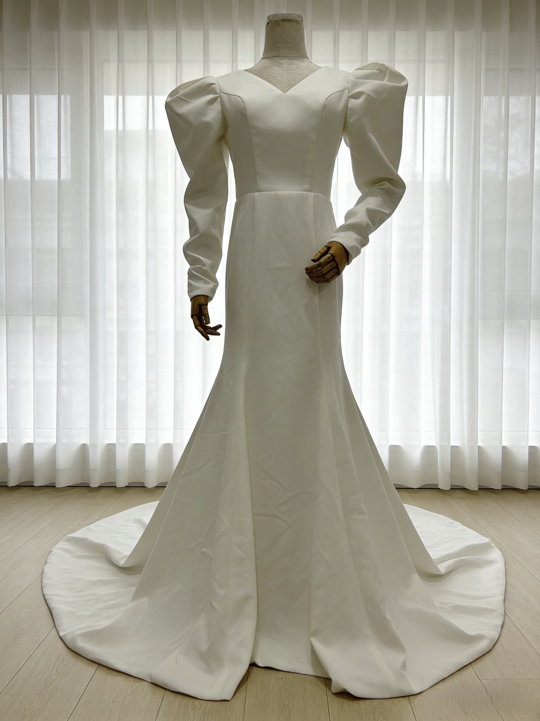 上品 エレガント オフホワイト Vネックドレス 長袖 ウェディングドレスソフトマーメイドライ 前撮り 大人気上昇