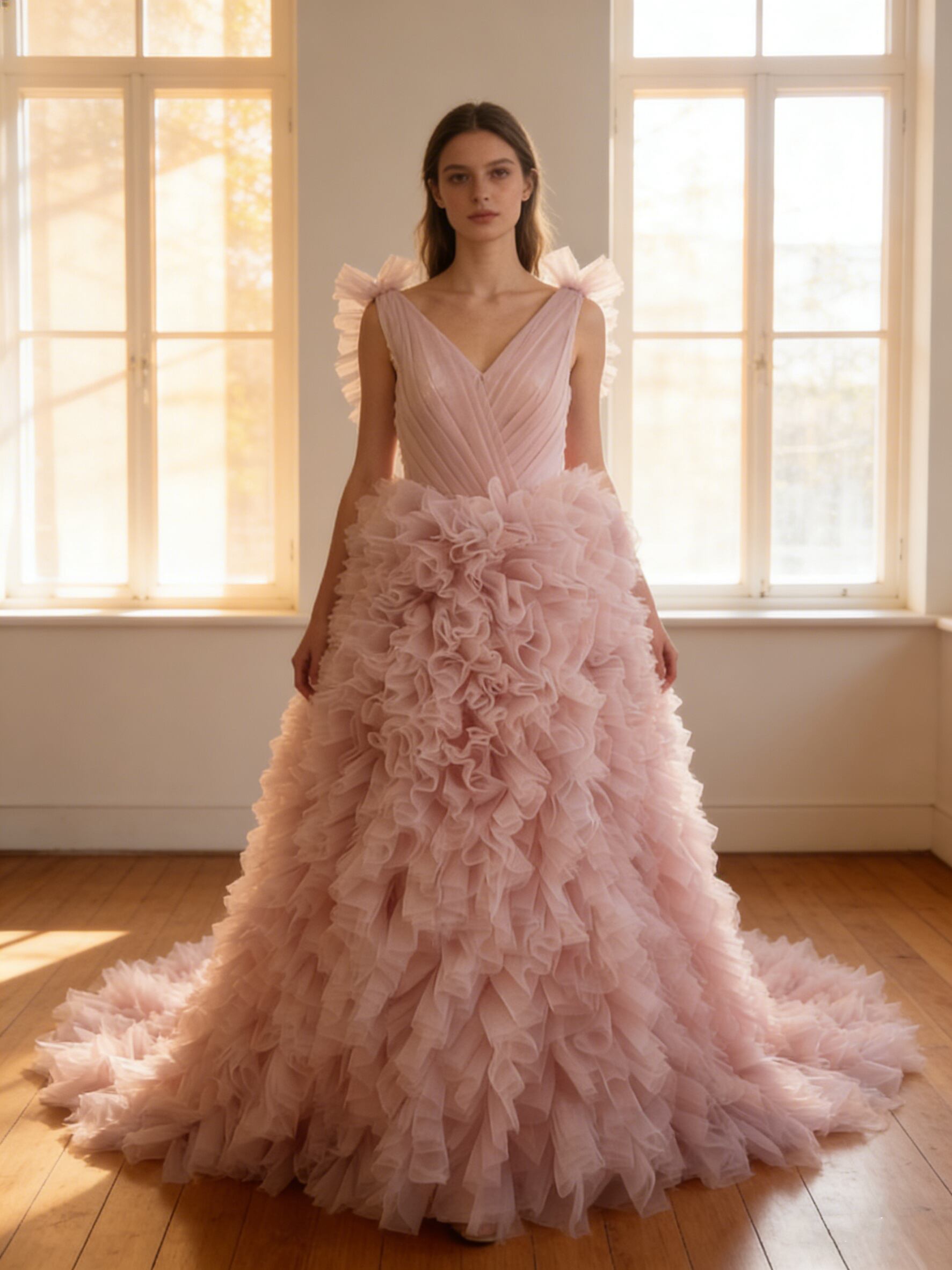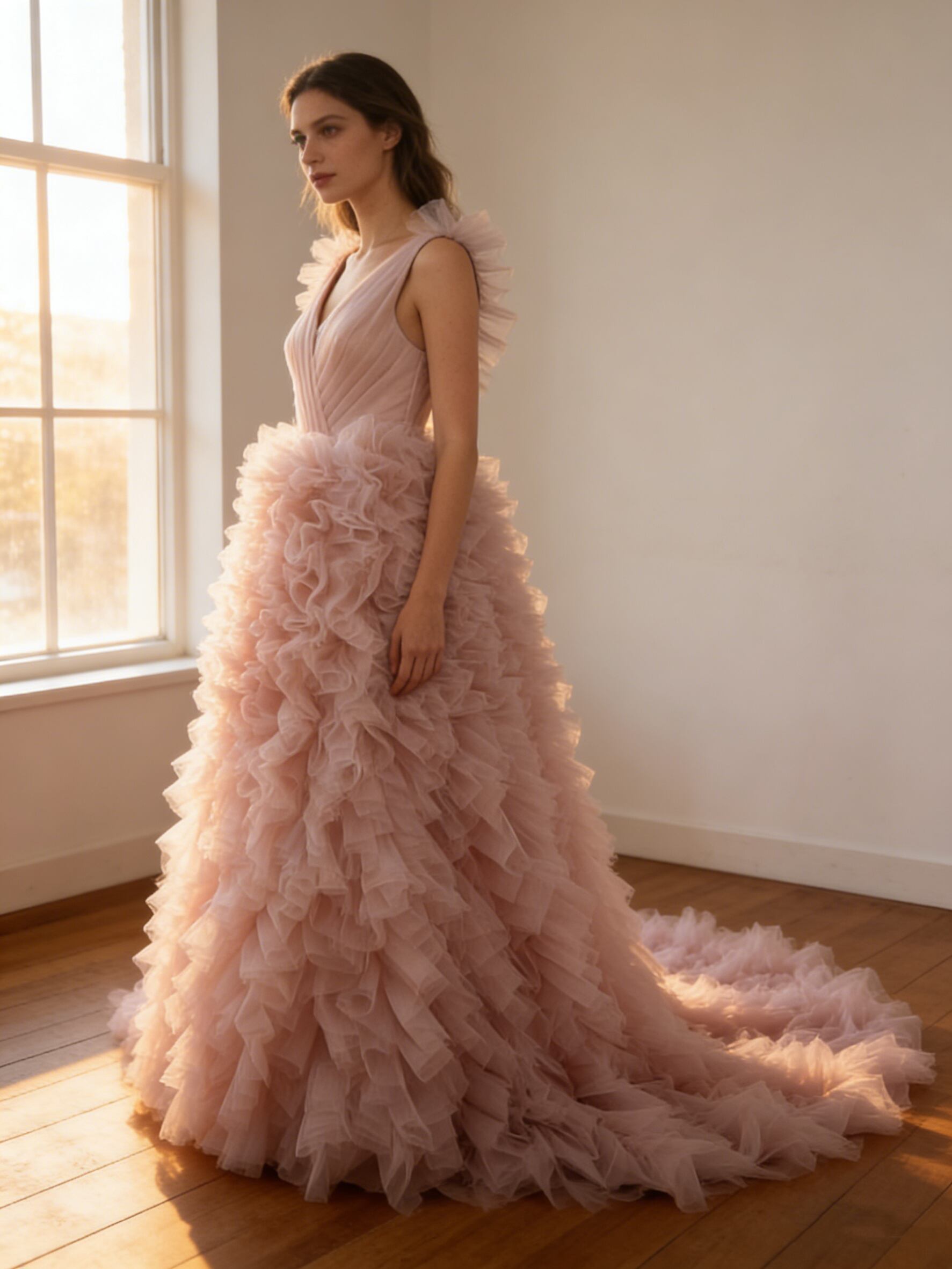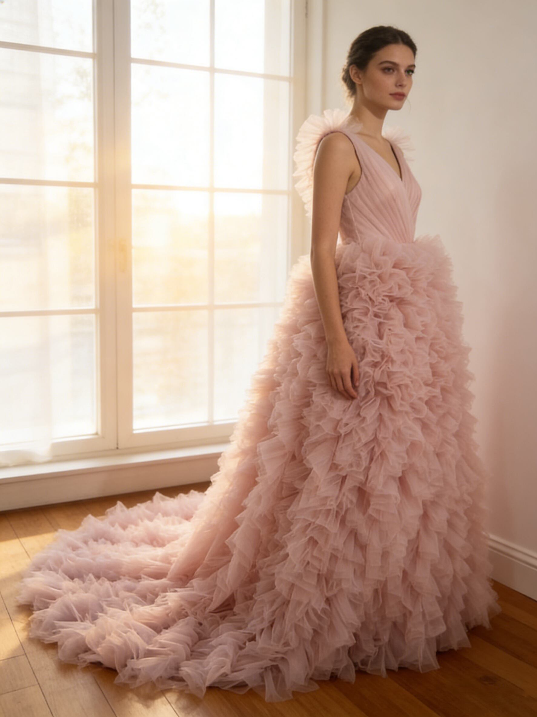 送料無料!もこもこカラードレス ピンク 重ねたチュールスカート挙式/前撮り/結婚式