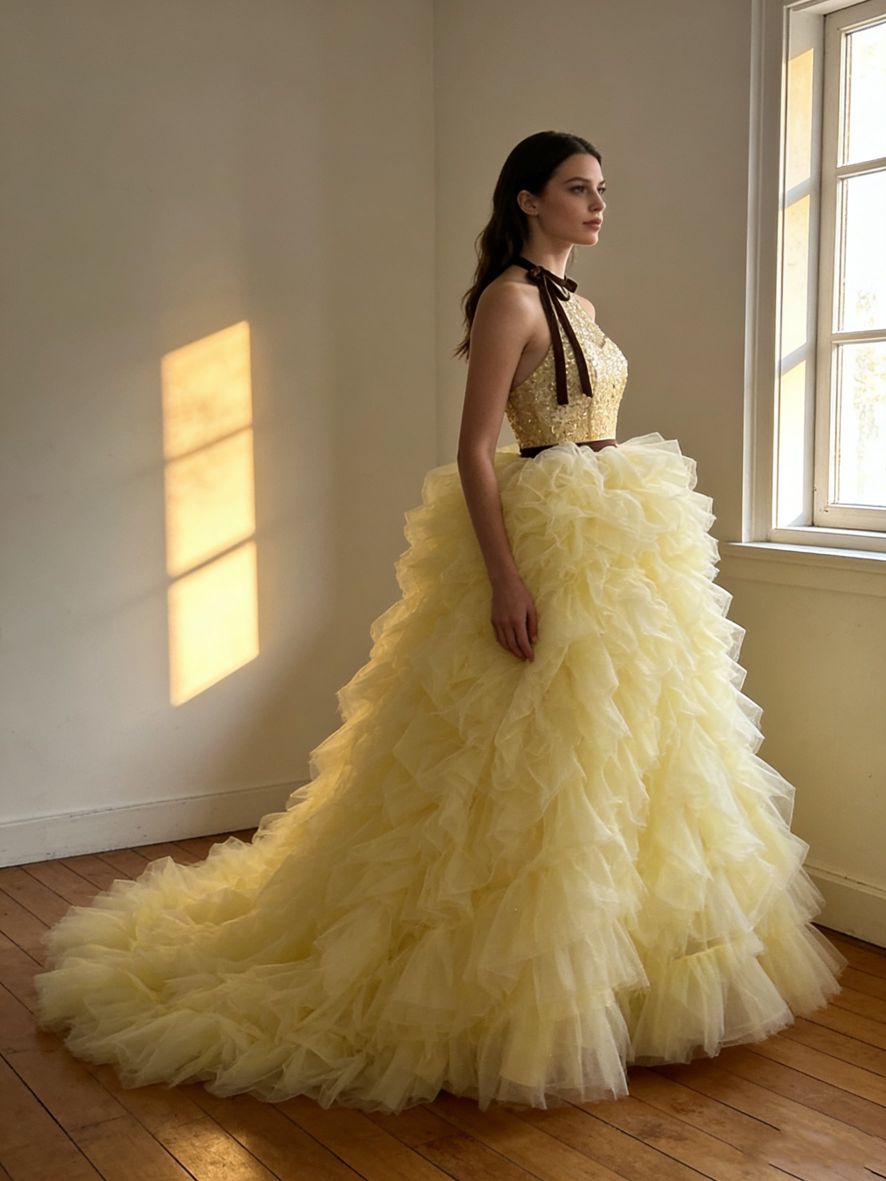 もこもこ イエロー キラキラチュール カラードレス チュールドレス フリルオフショルダー ふわふわ ボリュームドレス