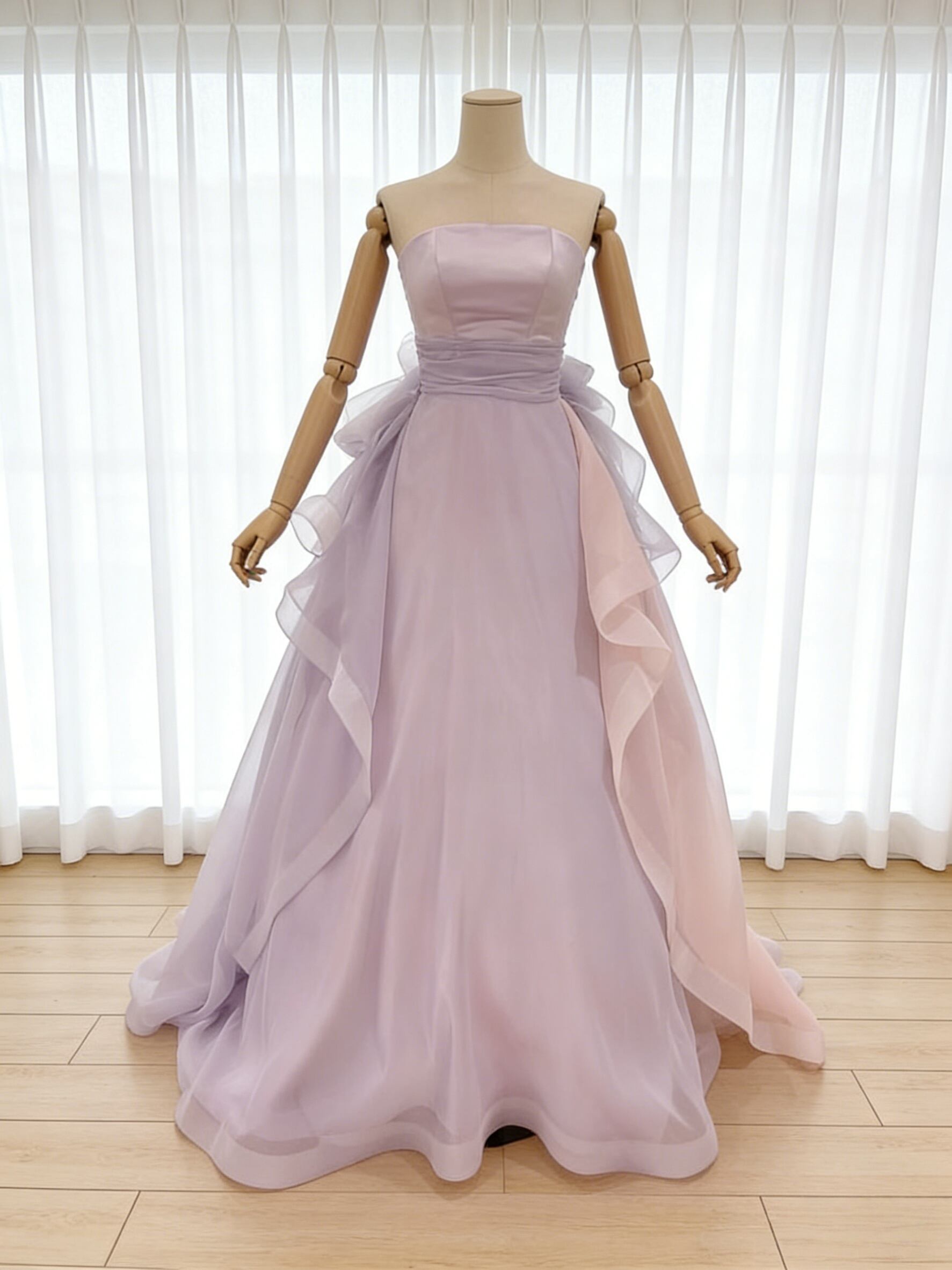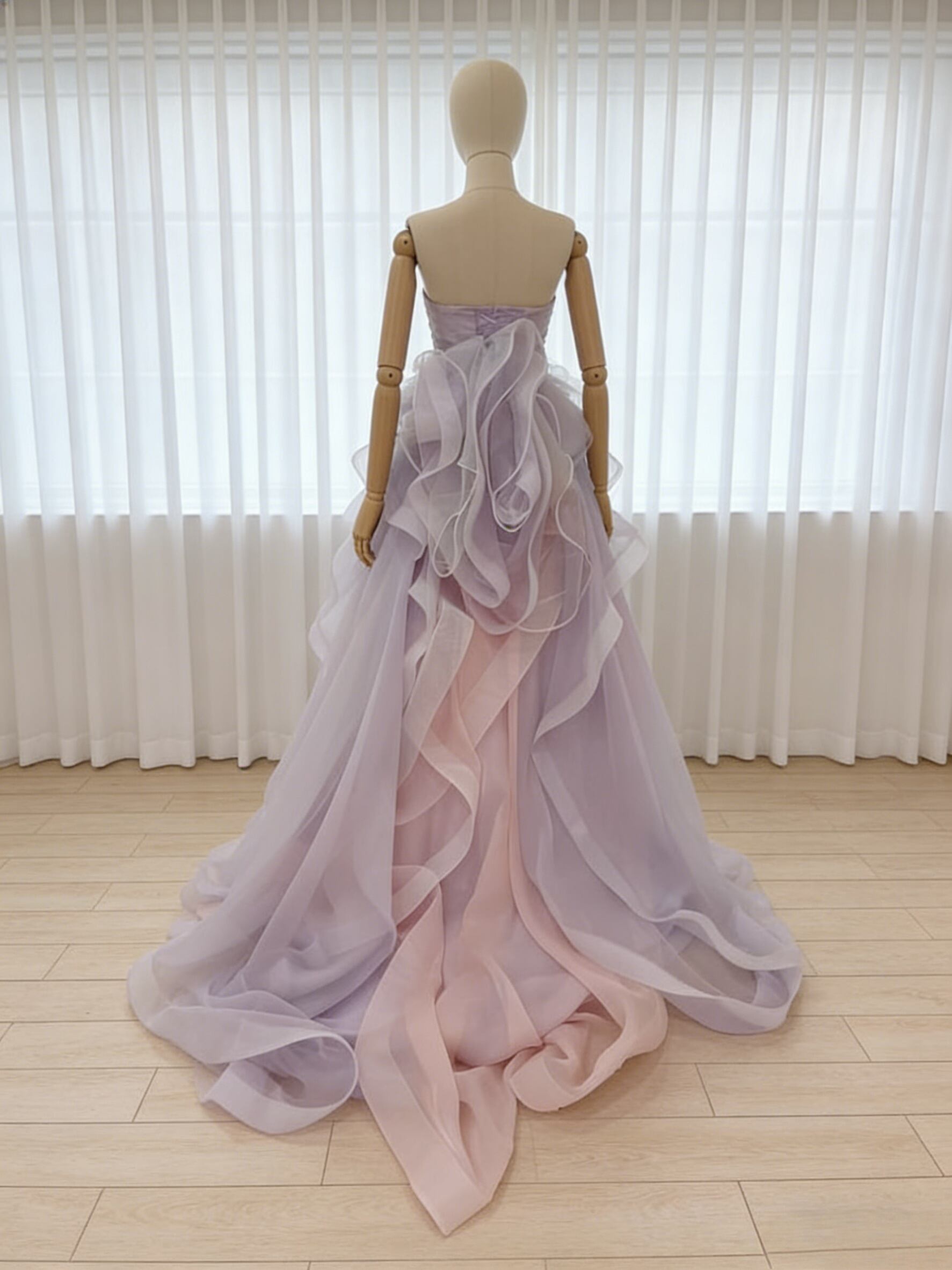 2色 もこもこカラードレ 重ねたチュールスカートプリンセスライン フレアスカート 挙式/前撮り/結婚式