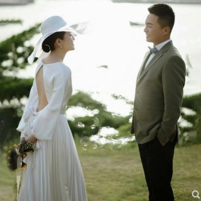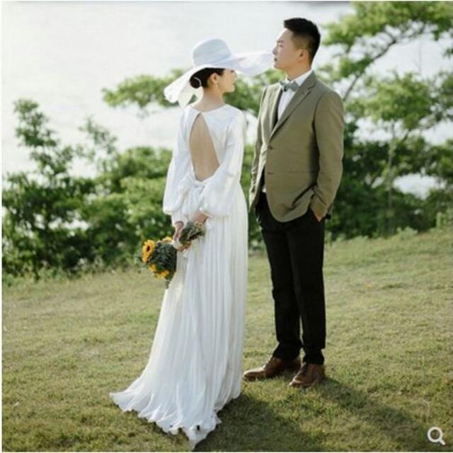 高品質! ウエディングドレス ホワイト 背中見せ Vネックドレス