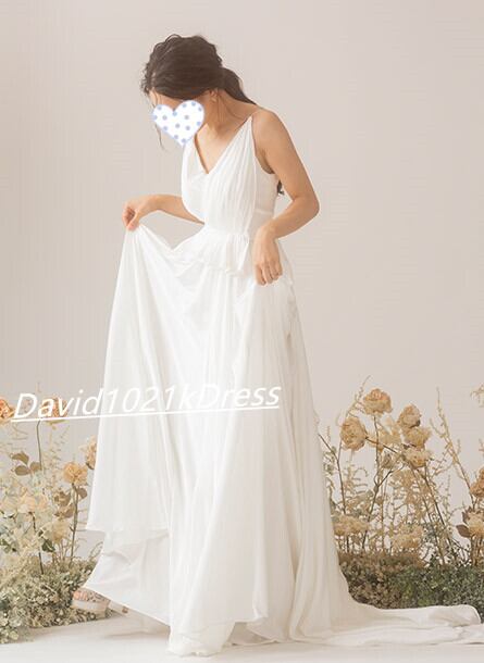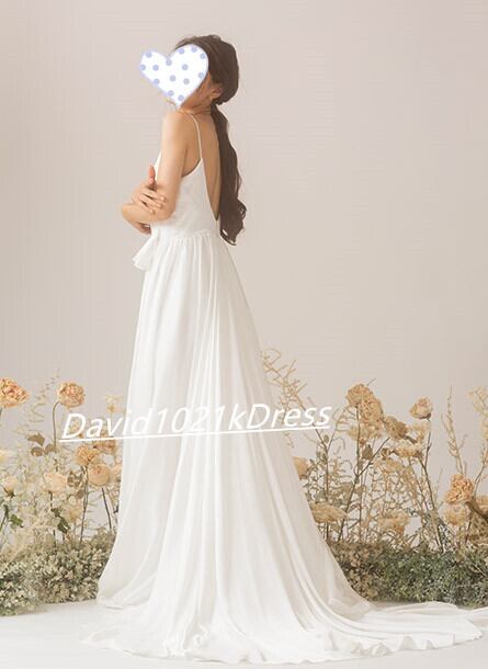 高品質! 憧れのドレス ホワイト 二次会 トレーン 背中見せ Vネック