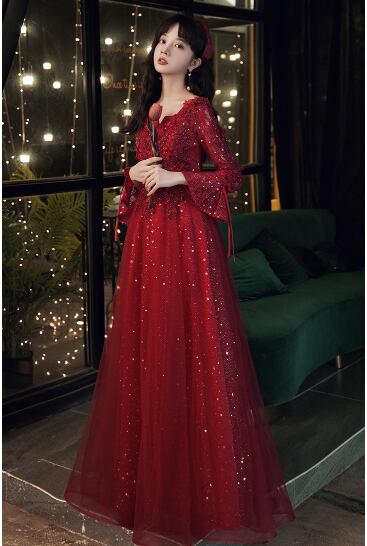 高品質! ボルドー色 パーティードレス キラキラチュール 結婚式