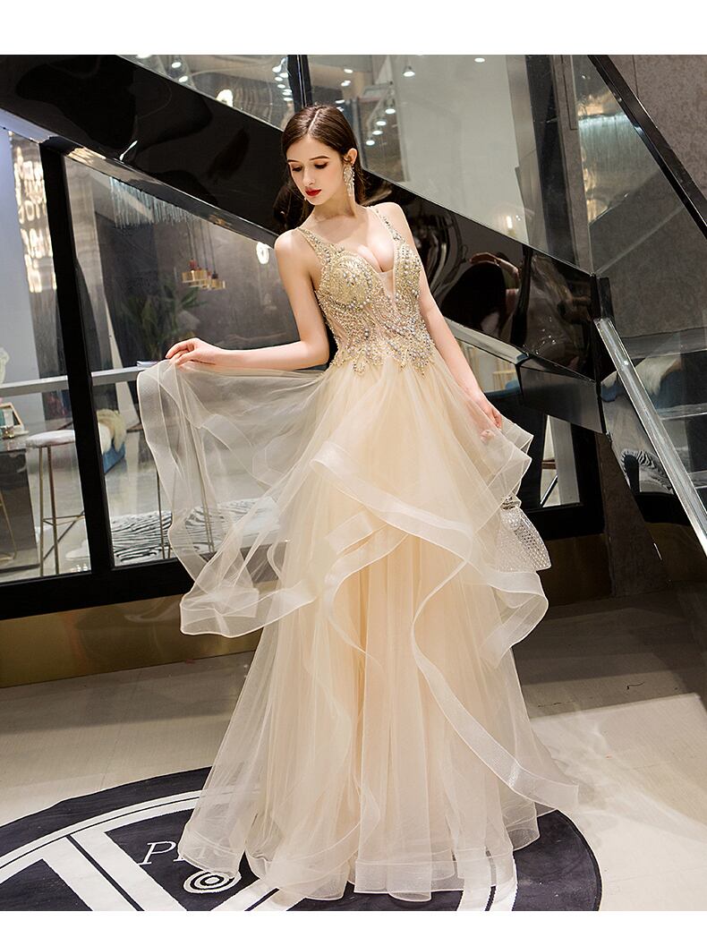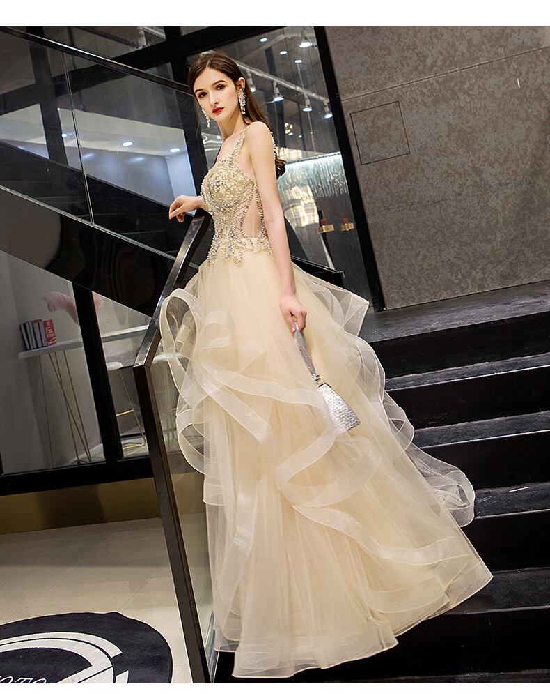 上品! パーティードレス シャンパン色 上質オーガンジー お呼ばれ/二次会 花嫁