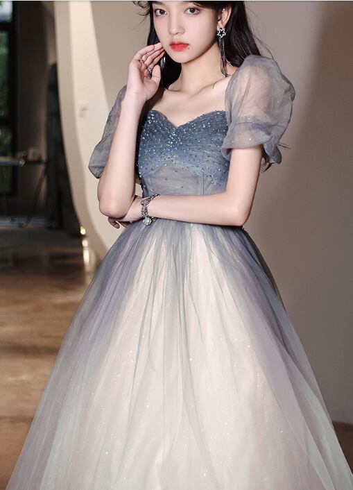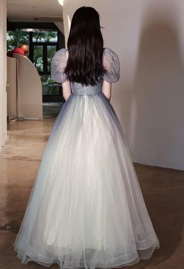 憧れのドレス 青/ブルー ソフトチュール ロング シースルー袖