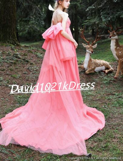 カラードレス ピンク ベアトップ トレーン 挙式 前撮り結婚式
