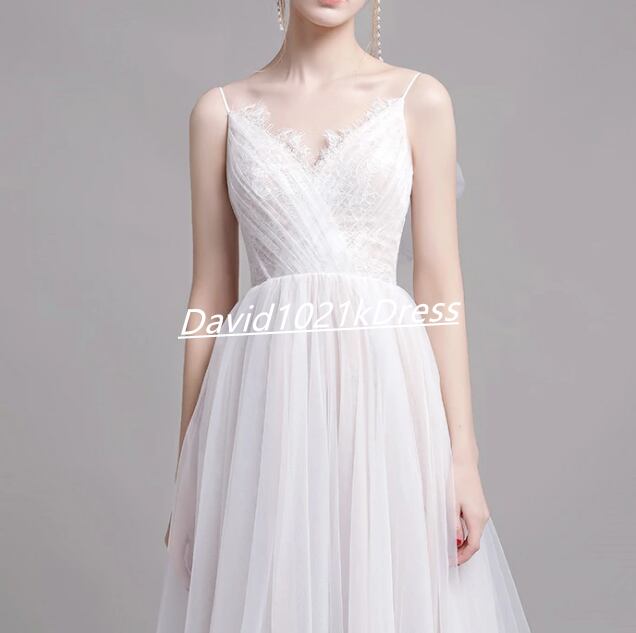 ウエディングドレス 2次会 ドレス レース 前撮り Vネック 人気