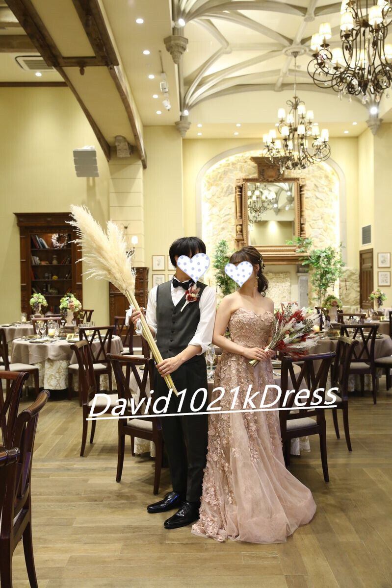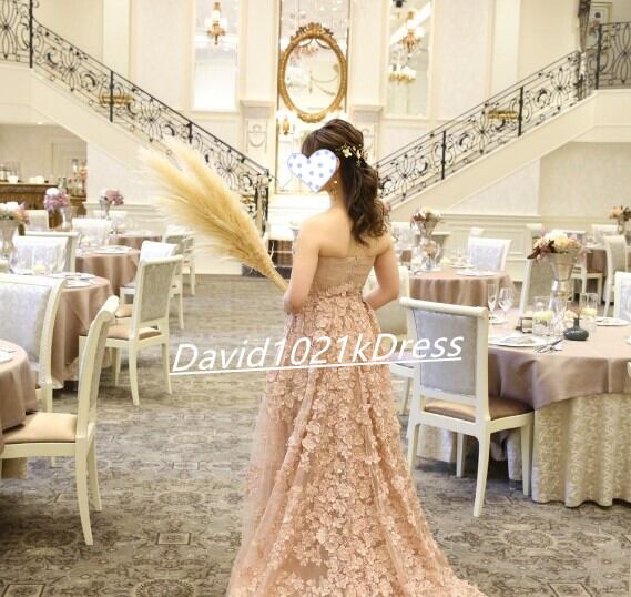 ウエディングドレス シャンパン色 花びら付き ベアトップ 前撮り