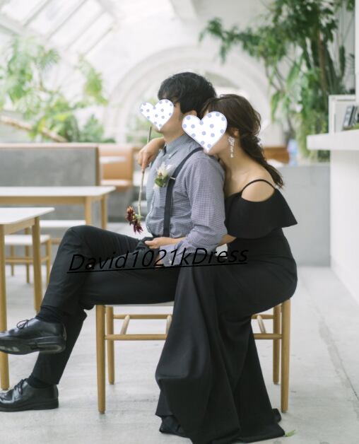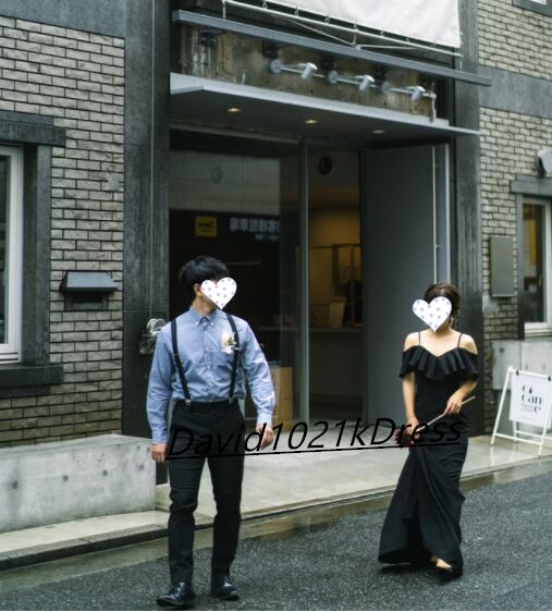 エレガント ウェディングドレス 黑 前撮り フェミニン オフショルダー