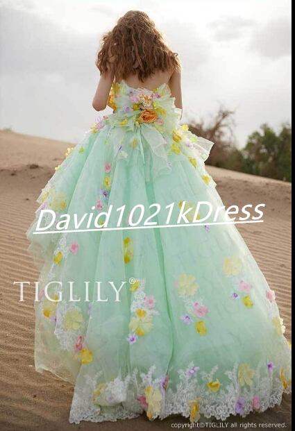 高品質! カラードレス 薄グリーン フィッシュテール 花びら付き