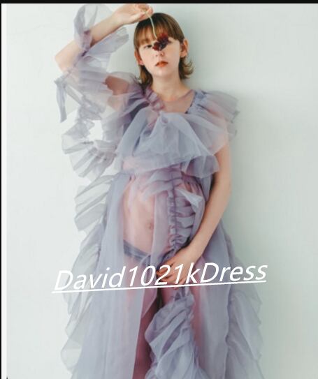 高品質!妊婦ドレス マタニティ写真撮影 グレー シースルー ワンピース ソフトチュール