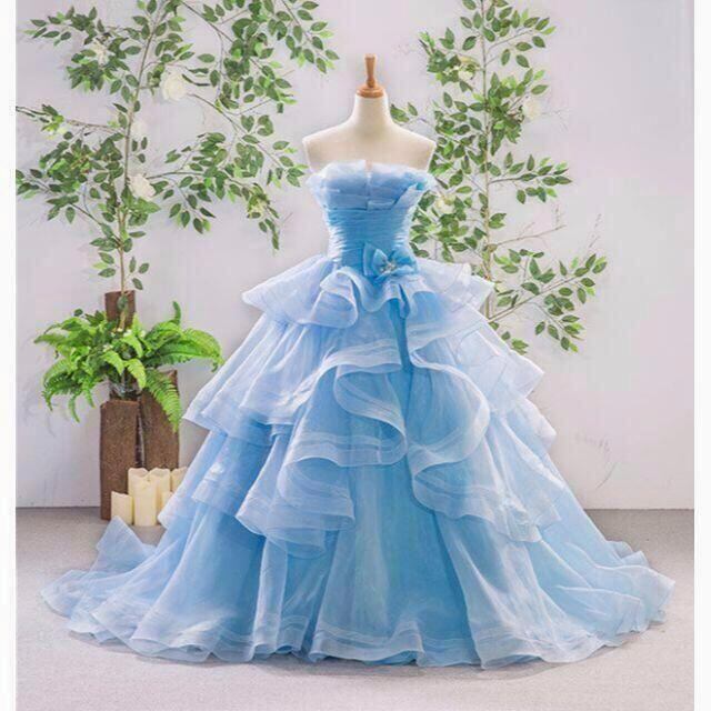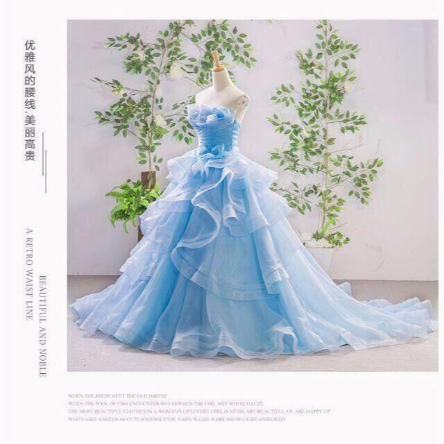 素敵なカラードレス 憧れのドレス 水色 トレーン 優雅なシルエット