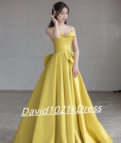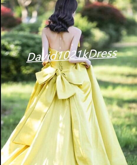 エレガント パーティードレス イエロー ベアトップ リボン 2次会