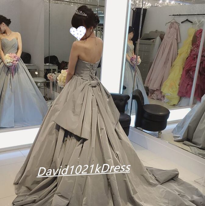 高品質! ウェディングドレス ベアトップ 大きなリボン トレーン