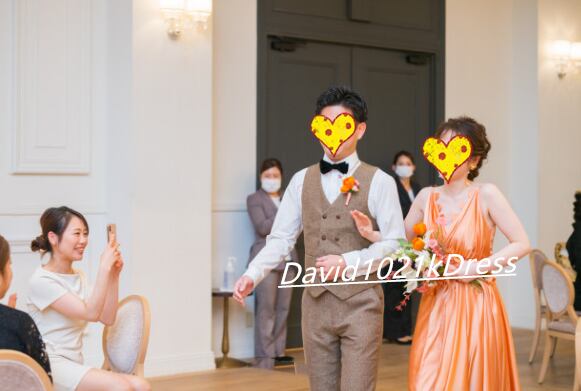 前撮りドレス オレンジ ウェディングドレス 結婚式 人気上昇 Vネック