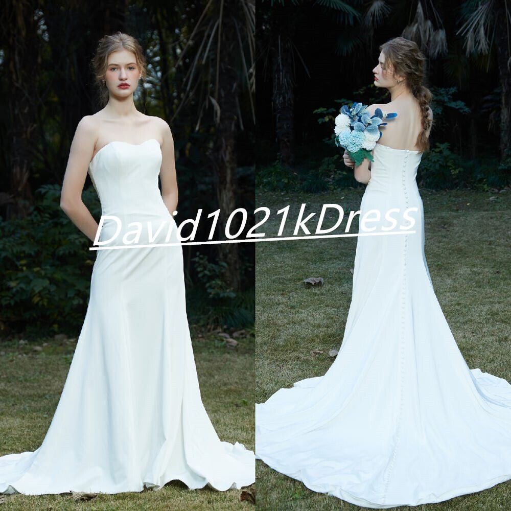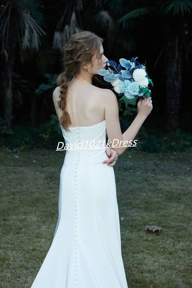 エレガント ウェディングドレス ベアトップ くるみボタン トレーン 前撮り