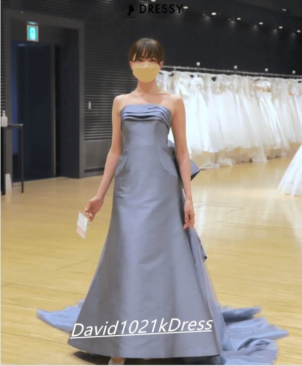 エレガント ウェディングドレス 結婚式ドレス ベアトップ 青/ブルー