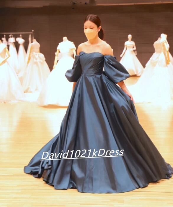 カラードレス 紺/ネイビー 結婚式/披露宴 ベアトップ パフスリーブ