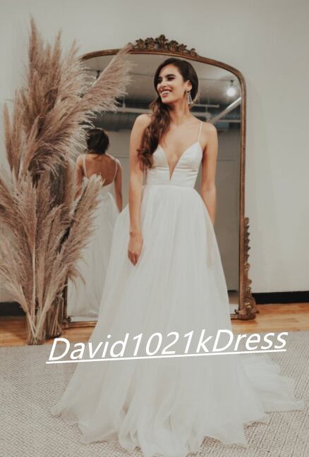 セクシー 深Vネック ウェディングドレス エレガント ソフトチュール